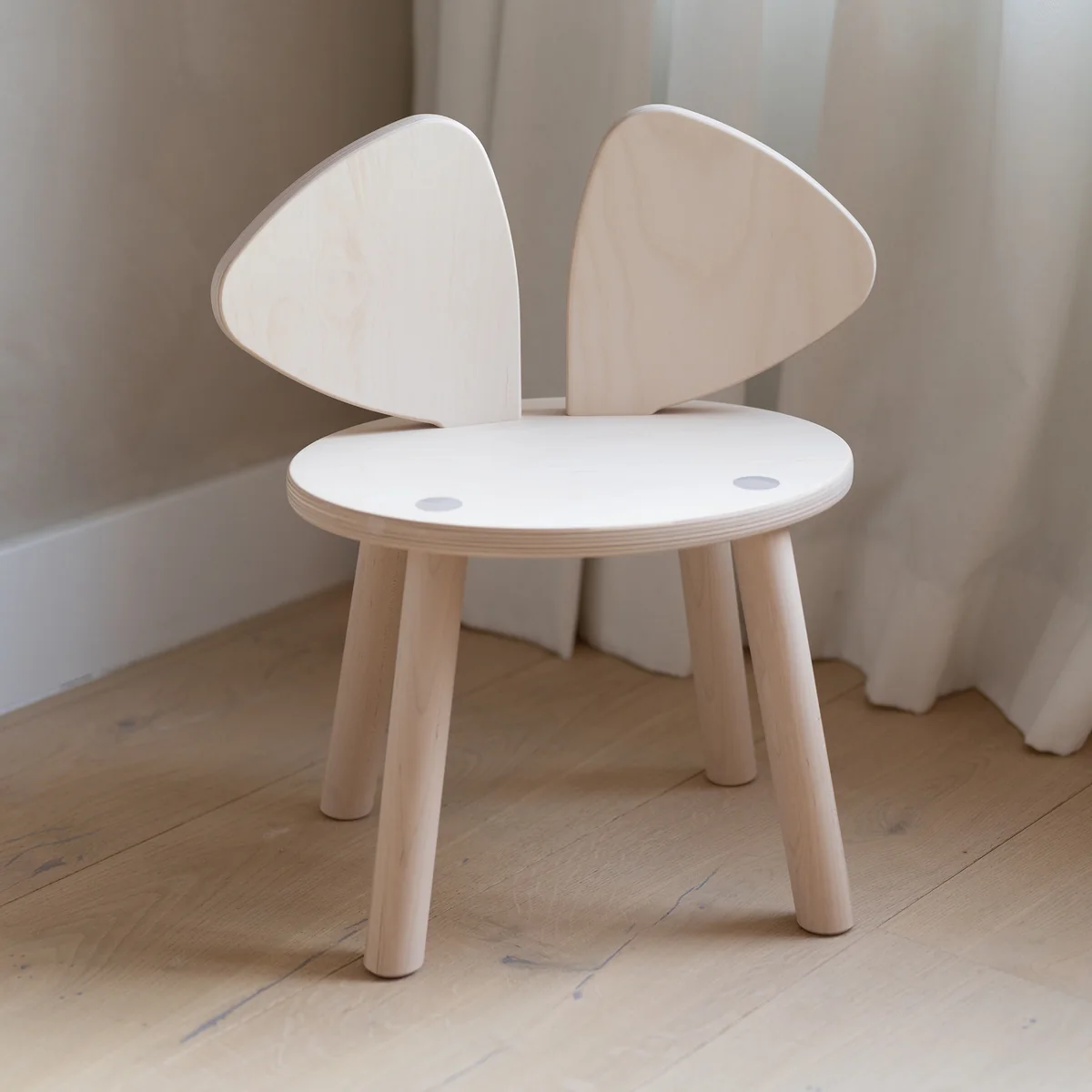La chaise Mouse chaise d'enfant de Nofred se distingue par ses bords arrondis et sa forme élégante et peut accueillir un enfant de 2 à 5 ans. Le dossier rappelle les oreilles d'une souris, d'où le nom de la série. Mouse son joli nom. Outre la chaise, la série comprend également des tables, des bancs et des chaises de différentes hauteurs pour les enfants de différents âges.