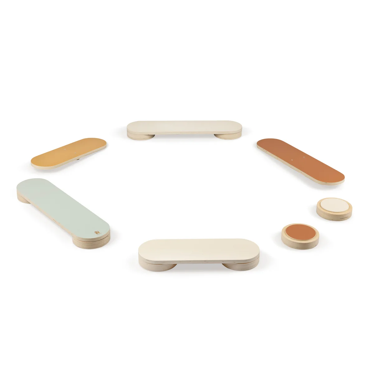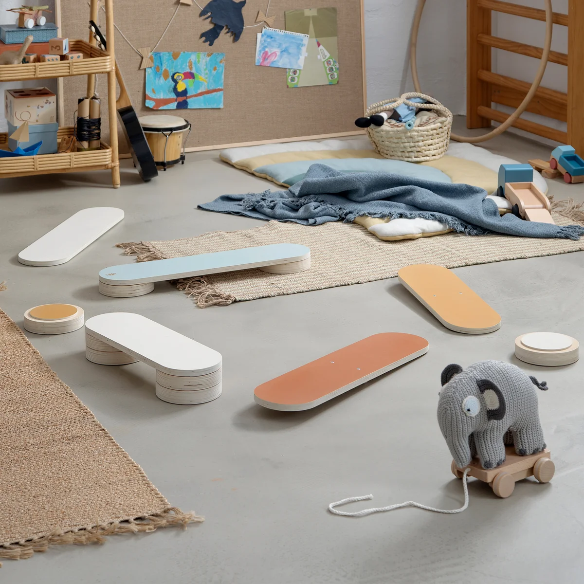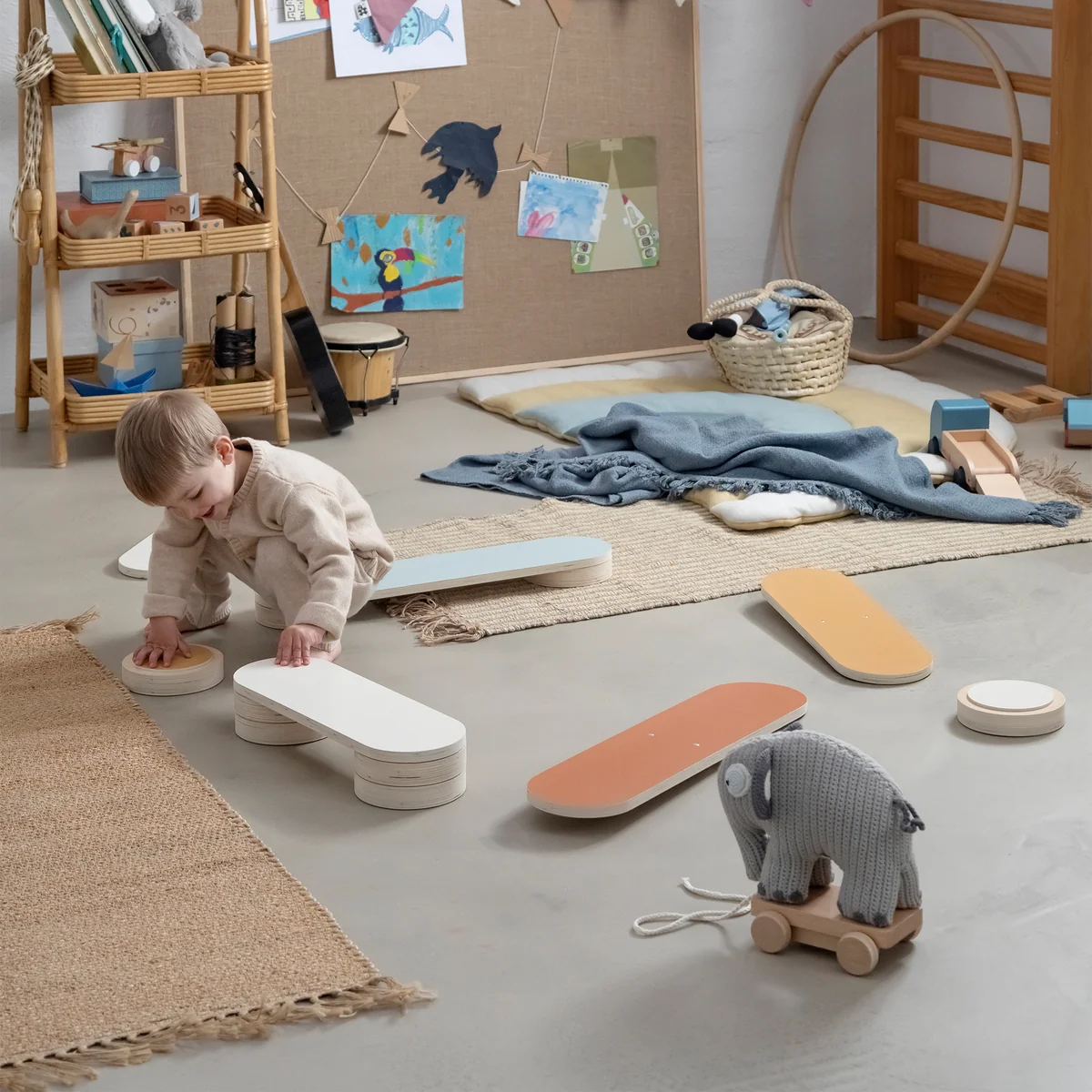 Le parcours d'équilibre en bois de la maison danoise Sebra entraîne la coordination des petits aventuriers ! Le parkour en bois propose différentes stations qui peuvent être placées à volonté. Ainsi, un tout nouveau parkour est créé à chaque fois, ce qui permet d'apprendre à connaître son corps de manière ludique. Le set se compose de 13 pièces au total.