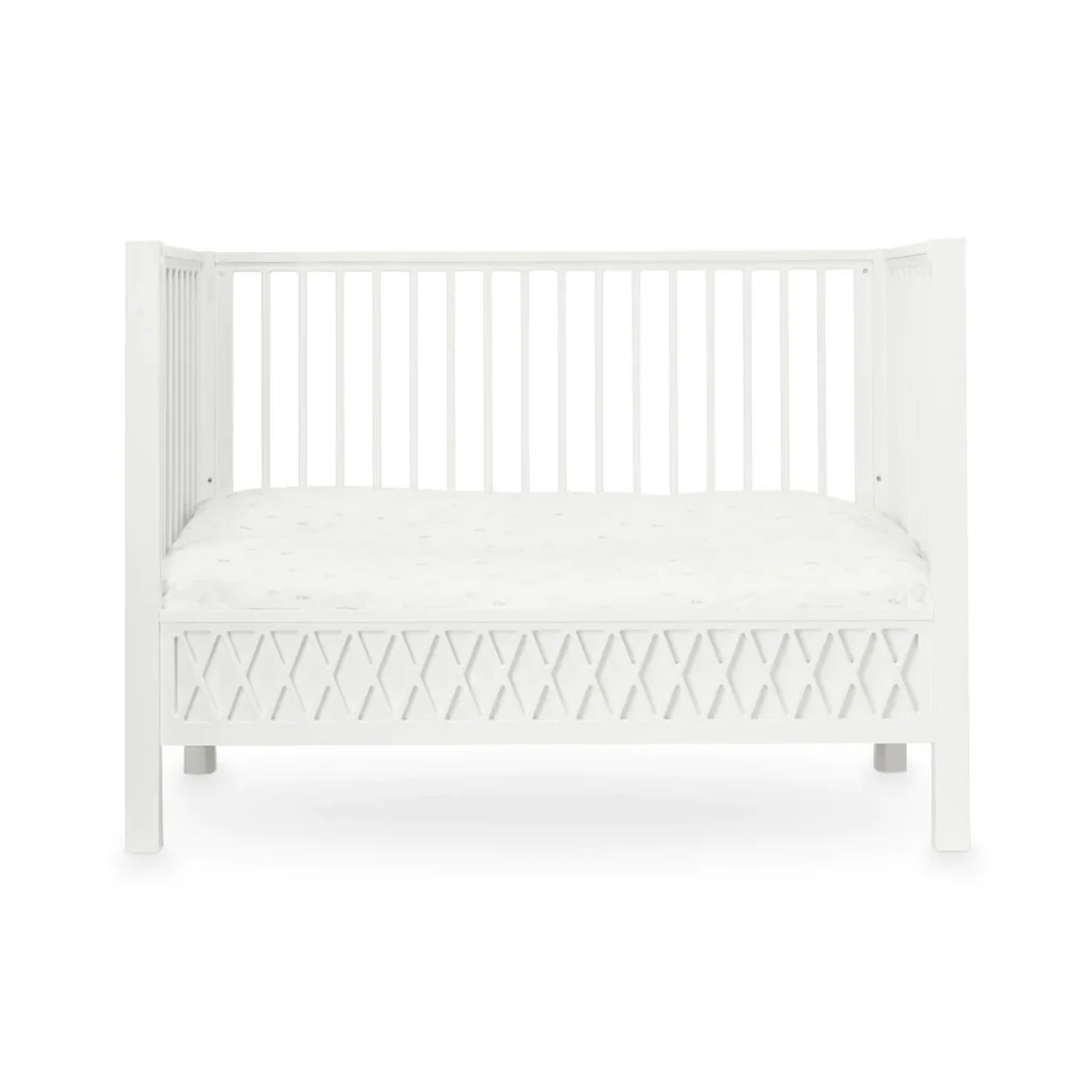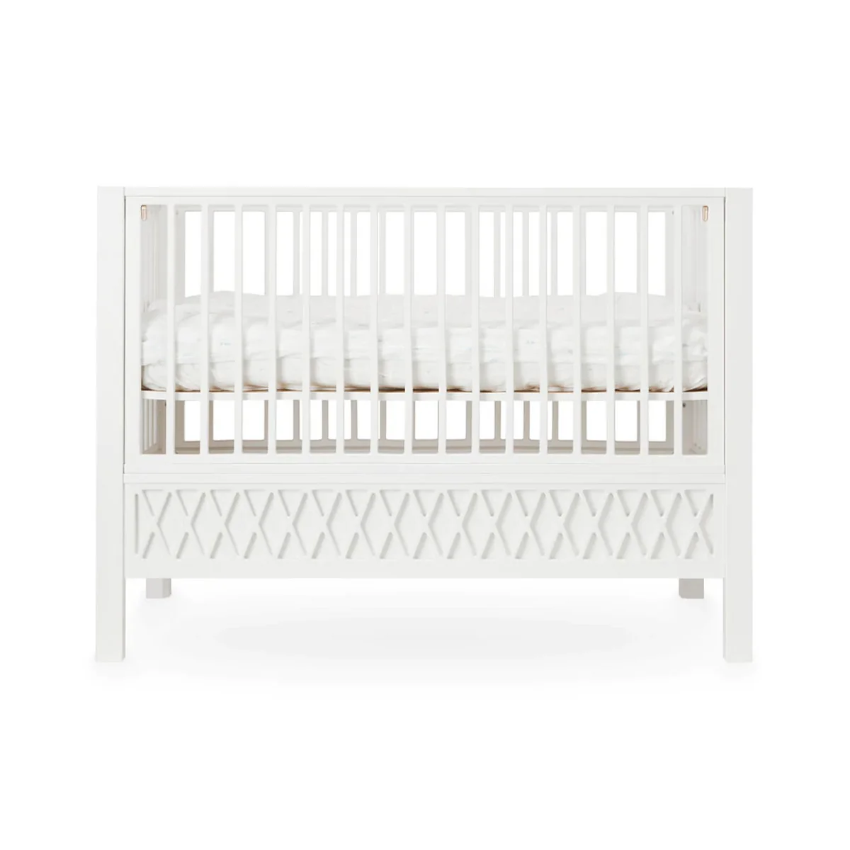 Le lit de bébé Harlequin de Cam Cam Copenhagen convainc tant par son aspect mignon que par le confort qu'il offre à l'enfant. La hauteur du matelas est facilement réglable sur trois niveaux.