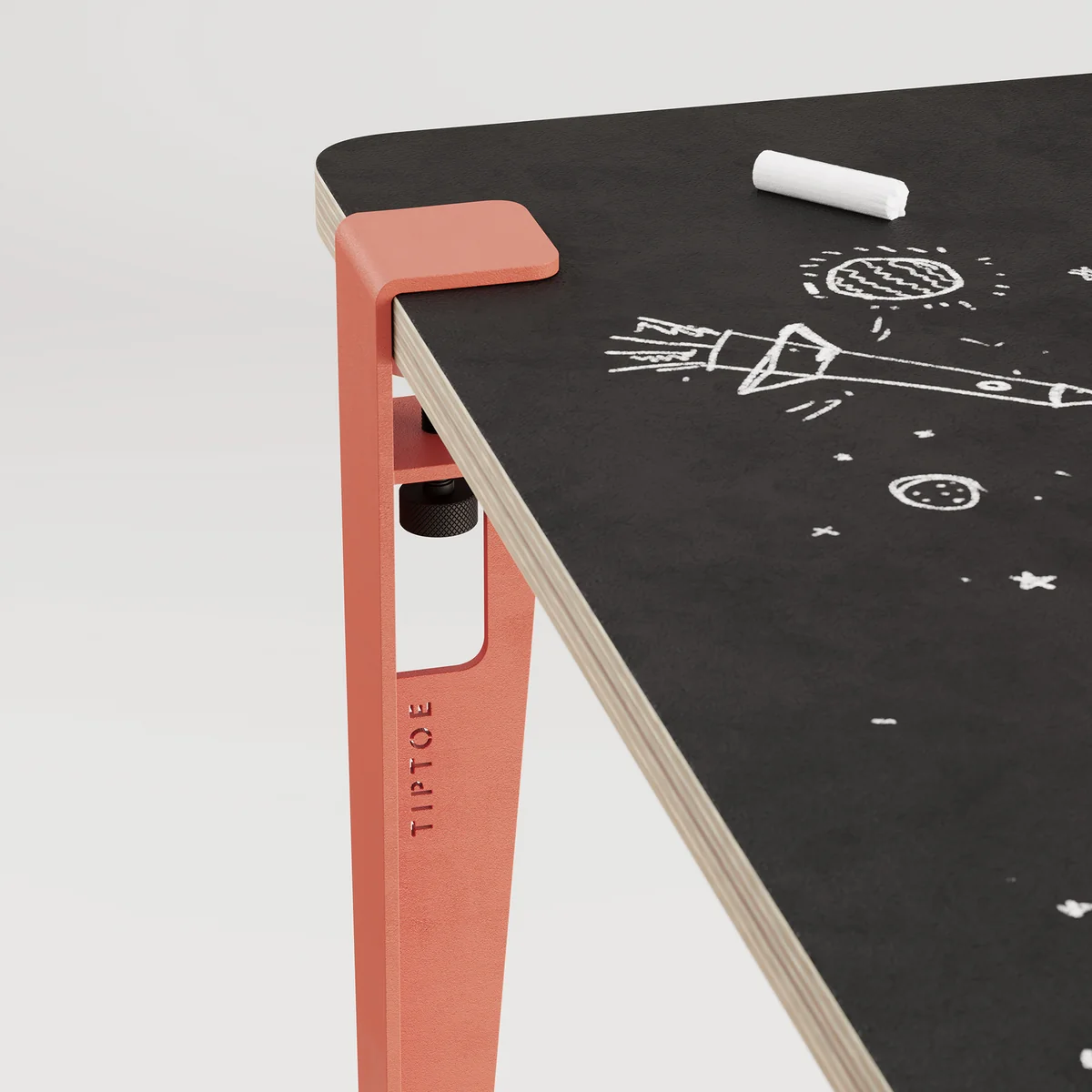 Le bureau pour enfants Ardoise Vice Versa du fabricant français TipToe donne une touche créative à la chambre de chaque enfant ! Le plateau de table fonctionnel et intemporel est fabriqué en bois écocertifié avec un revêtement en ardoise. Les enfants et les adultes peuvent ainsi dessiner et écrire à la craie. Les pieds de la table et les supports sont fabriqués en acier recyclable. La table est idéale pour les enfants âgés de 3 à 6 ans.