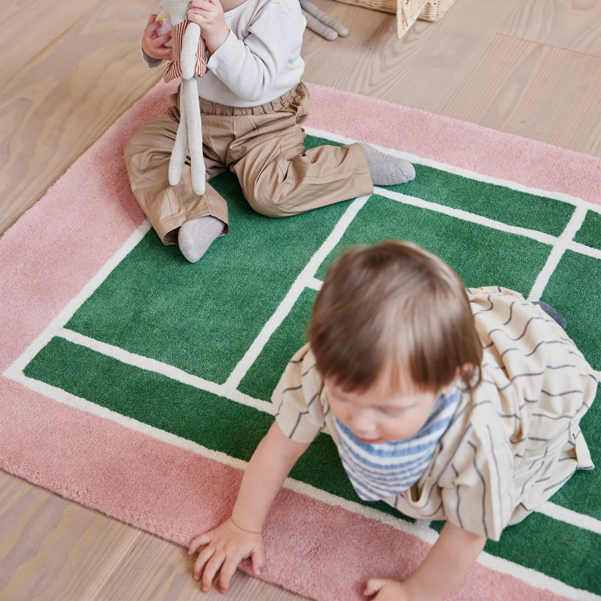 Le Tennis Rug de OYOY Mini apporte style et confort à la maison. Fabriqué à partir d'un mélange luxueux de 80 % de laine et de 20 % de coton, ce tapis offre une surface douce mais résistante qui confère chaleur et texture à chaque pièce. Avec ses dimensions L150 x l88 cm, il offre amplement d'espace pour différentes pièces, que ce soit dans le salon, la chambre à coucher ou le couloir.