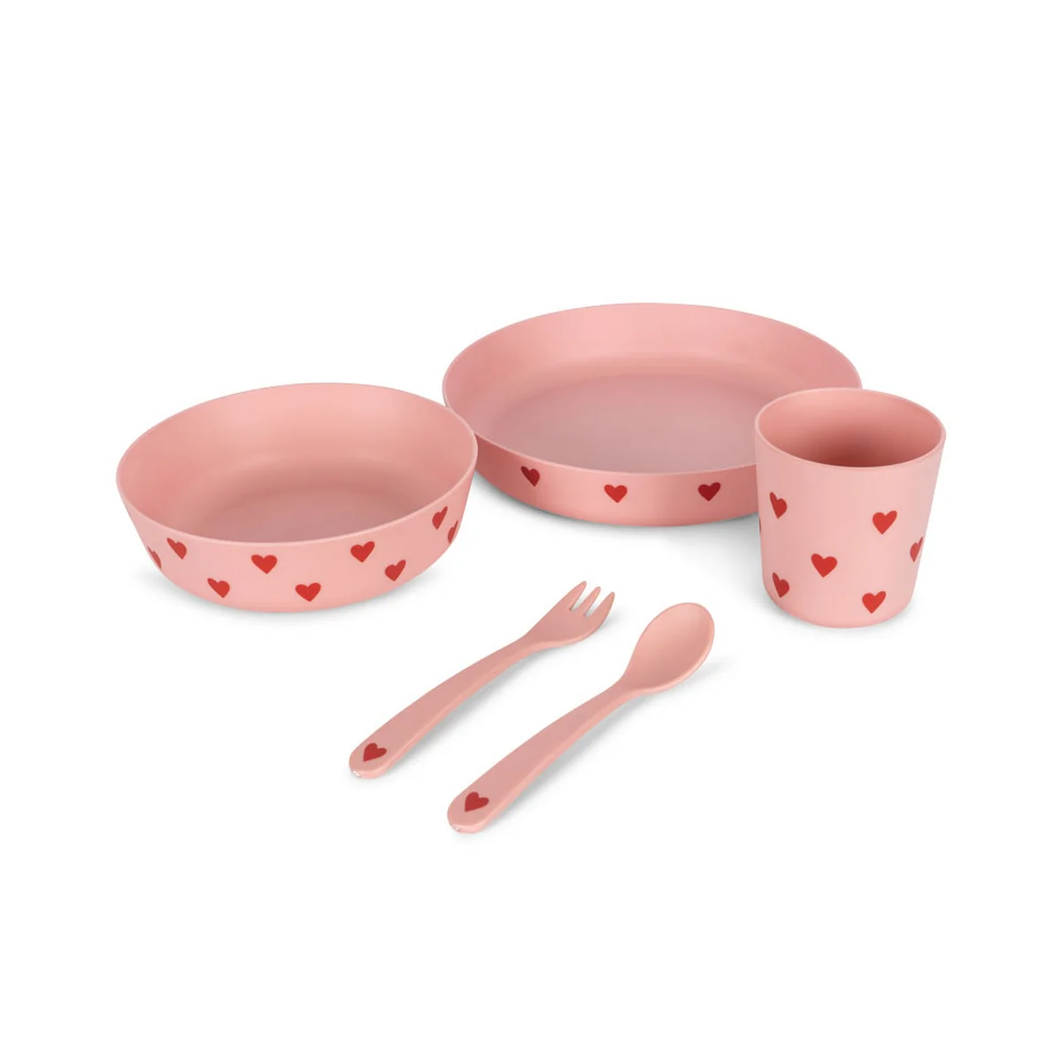 Avec ce ravissant set de vaisselle en PLA de Konges Sløjd , les repas deviennent spéciaux. Le set convient parfaitement aux jeunes enfants qui apprennent à manger tout seuls. Le set se compose d'une assiette, d'un bol, d'une tasse et de couverts avec cuillère et fourchette, tous fabriqués en polyactide (PLA) 100 % écologique. Le set peut être mis au lave-vaisselle, mais ne doit pas être chauffé à plus de 70 °C. Il ne convient pas pour le four à micro-ondes.