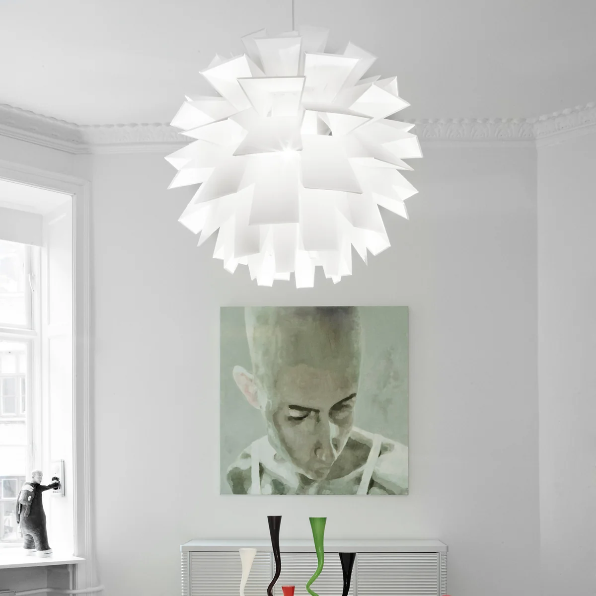 Le Norm 69 a déjà été développé en 1969 par l'architecte Simon Karkov et est un ensemble d'installations légères composé de 69 pièces. Aucune colle ni aucun outil n'est nécessaire pour assembler un luminaire élégant et caractéristique avec une touche personnelle. L'habile composition des différents éléments de la lampe garantit une utilisation maximale de la lumière sans être ébloui. Le Norm 69 de la société Normann Copenhagen est fabriqué dans un matériau très souple et durable, qui peut être plié à de nombreuses reprises et s'adapte facilement à la large plage de température d'un luminaire.