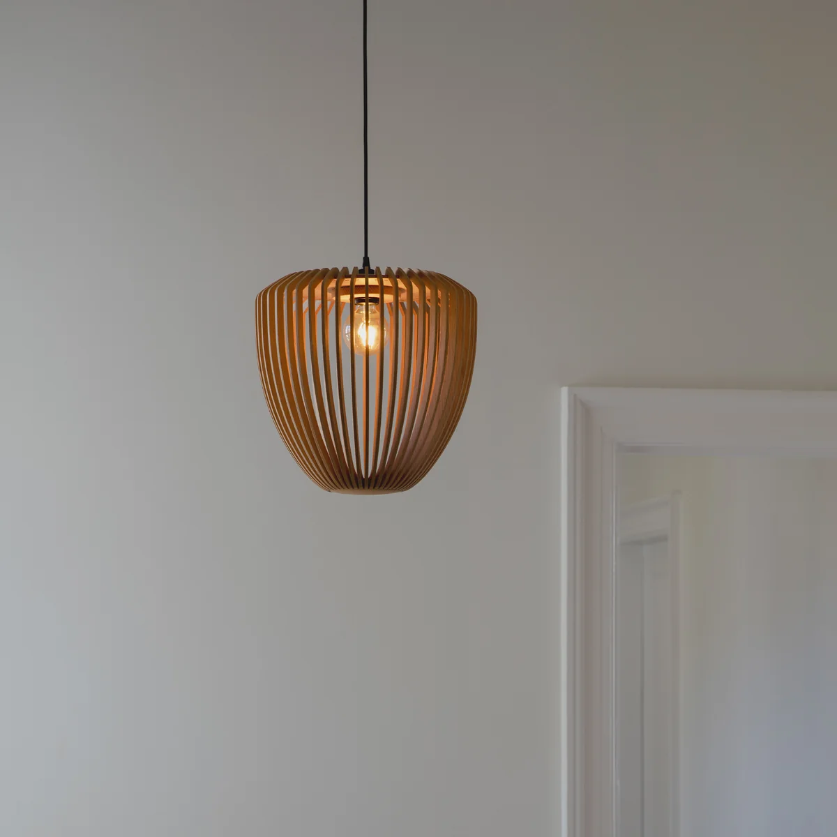 Le Clava Wood Abat-jour de Umage - un abat-jour sculptural qui confère grâce et sobriété à la maison. Clava Wood est fabriqué à partir de lamelles de bois artistiquement découpées au laser et projette un jeu captivant de lumière rayonnante qui dessine des motifs enchanteurs sur les murs de la pièce. Les détails en bois apportent une touche de nature raffinée au design et à la maison, tandis que la forme organique permet à l'abat-jour de se distinguer comme un chef-d'œuvre sculptural.