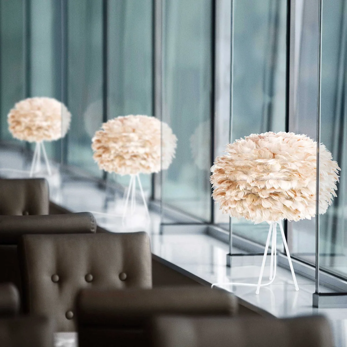 La lampe Eos diffuse une lumière douce et indirecte filtrée par les plumes. La lampe à plumes de Umage peut ainsi être installée aussi bien dans le salon que dans une chambre, où elle créera une ambiance chaleureuse et confortable.