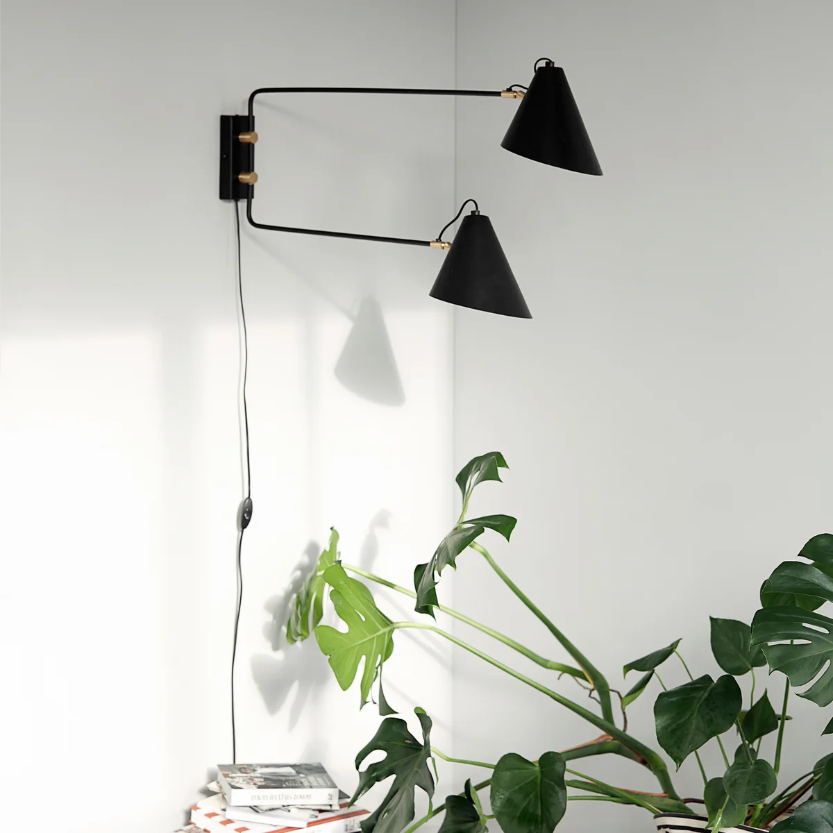 Les bras de l'applique murale à 2 lampes peuvent être déplacés séparément les uns des autres afin que la lumière puisse briller dans différentes directions. Comme lampe de lecture au-dessus du fauteuil ou comme veilleuse à côté du lit, l'applique Club émet une lumière agréable. Le luminaire peut également être utilisé pour éclairer directement l'élément de cuisine et se concentrer sur différentes zones du plan de travail.
