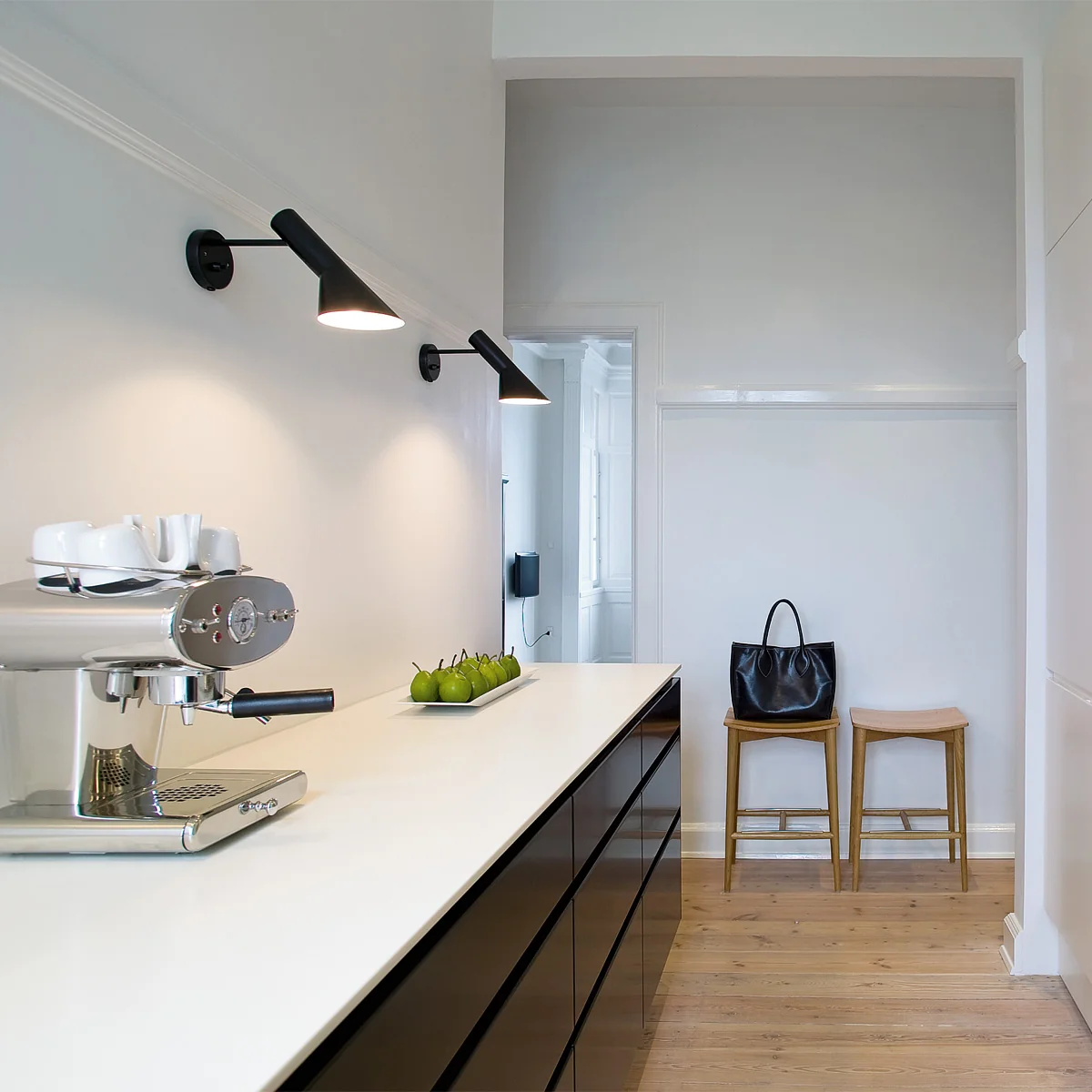 La lampe d'Arne Jacobsen se distingue par son abat-jour exceptionnel, orientable et pivotant, dont la forme asymétrique répartit la lumière en conséquence. L'applique AJ - un classique du modernisme.