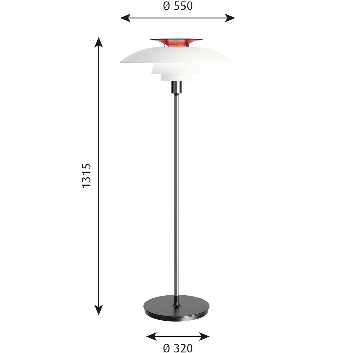 Le luminaire PH 80 lampadaire n'est pas seulement adapté au salon, mais aussi, grâce à son design intemporel, à toutes les autres pièces, comme la chambre à coucher ou le bureau.