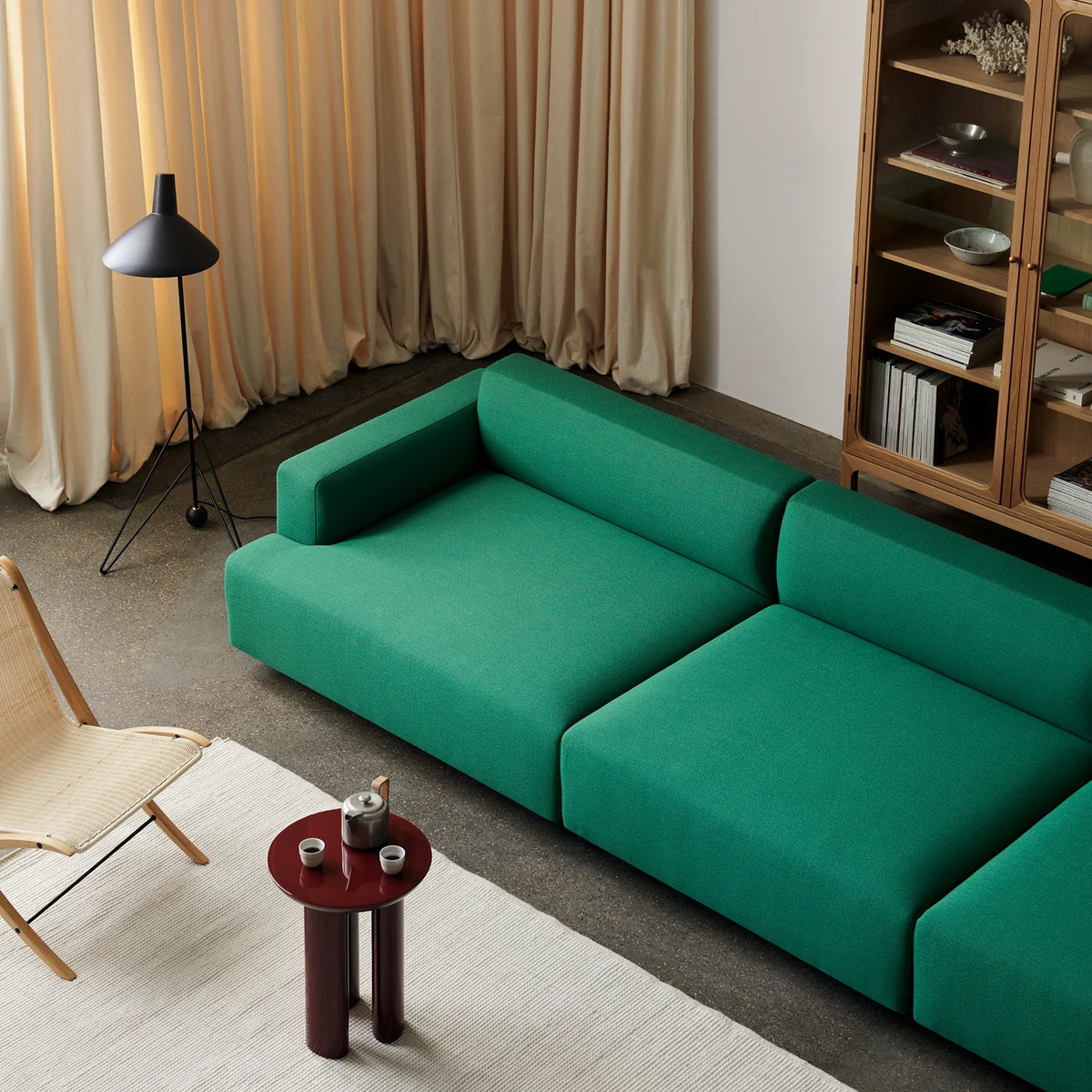 Le lampadaire Tripod HM8 de & Tradition reflète le minimalisme épuré de Hvidt & Mølgaard. Le lampadaire en aluminium laqué et en acier avec des détails en laiton crée un équilibre subtil entre la simplicité stricte de son design et la douceur créée par les bords incurvés de son support à trois pieds. Bien que la lampe ait été conçue en 1953, elle est maintenant lancée pour la première fois par & Tradition lancée en 2010.