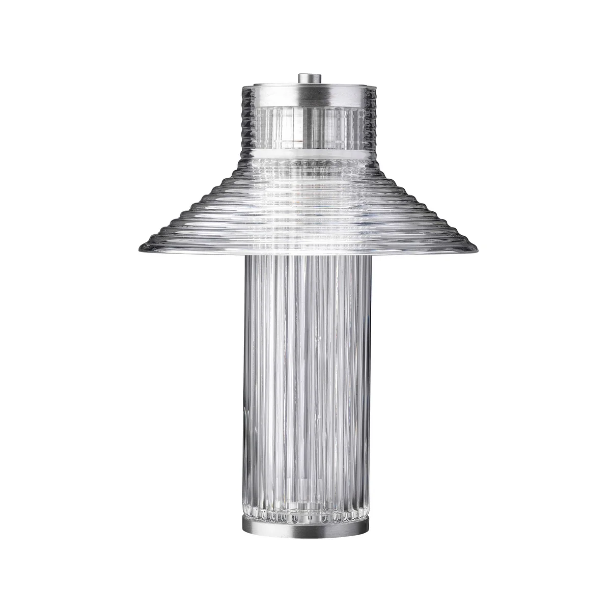 La lampe Sletterhage lampe de table à accu de FDB Møbler porte en elle l'atmosphère du phare de la péninsule danoise d'Helgenæs qui lui a donné son nom. Le verre transparent et strié joue doucement avec la lumière et rappelle les éléments fonctionnels et industriels qui, depuis des décennies, permettent aux pêcheurs et aux voyageurs de s'orienter. La designer Laura Bilde utilise systématiquement des composants en verre récurrents pour créer un langage formel harmonieux qui semble à la fois familier et contemporain.