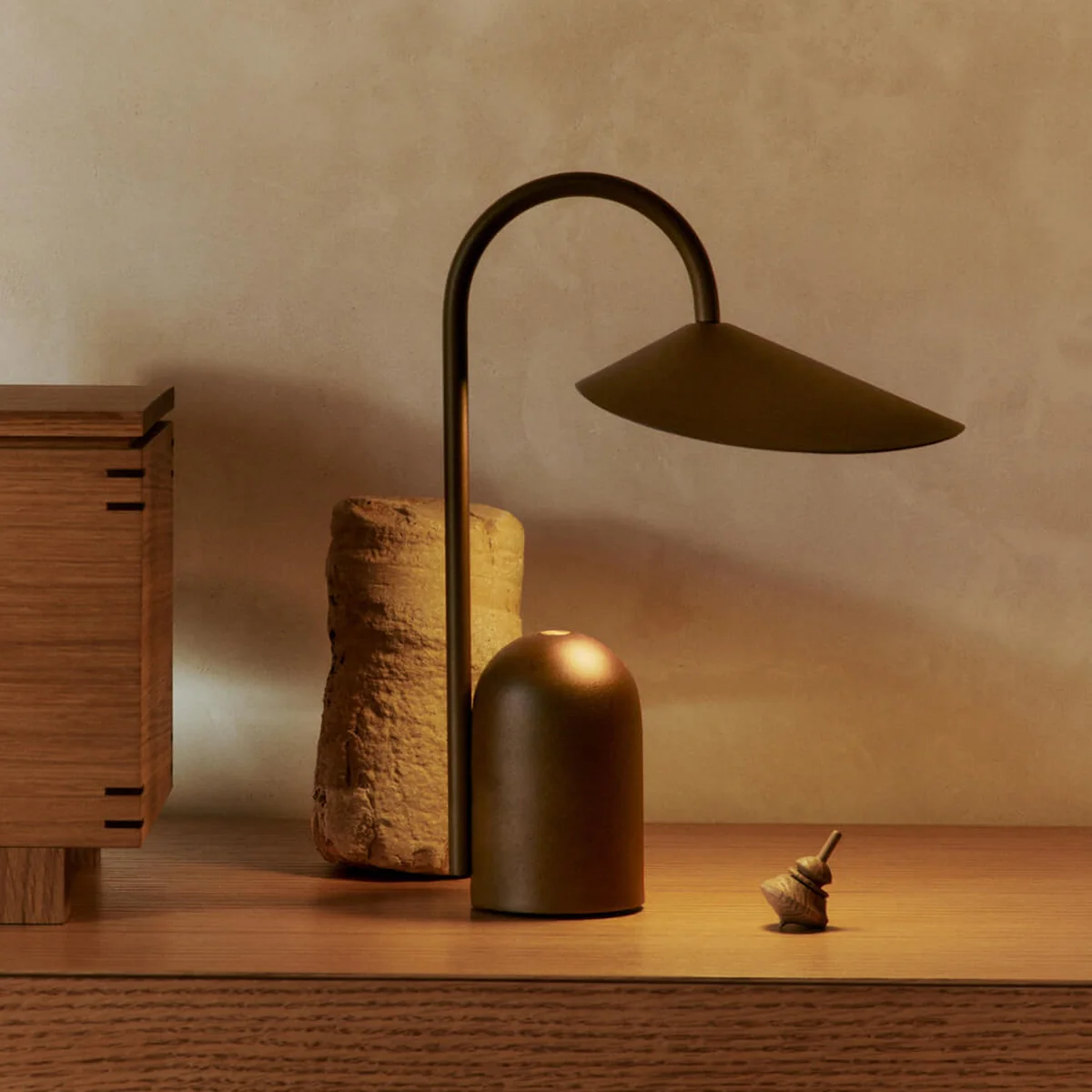 La lampe de table LED Arum de la maison Ferm Living se caractérise par son socle en marbre massif combiné à un abat-jour de forme organique. Le socle en marbre, qui crée un équilibre harmonieux dans son design excentré, contrebalance la suspension gracieuse de l'abat-jour à un arc métallique courbé qui rappelle une feuille. L'intérieur mat de la lampe diffuse une lumière douce et uniforme, et l'abat-jour réglable assure un éclairage optimal dans tous les environnements.