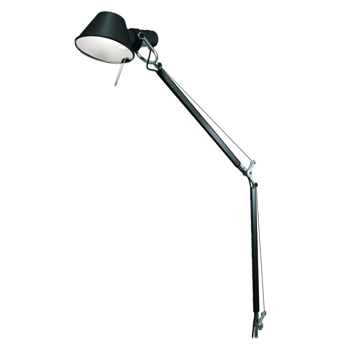 La structure très mobile, l'aspect sobre de l'aluminium et l'abat-jour en forme de chapeau sont les caractéristiques de la Tolomeo, dont la forme simple et archétypale a servi d'inspiration à de nombreux fabricants et designers pour des luminaires similaires. La longueur du câble, 2 mètres, assure la flexibilité nécessaire.