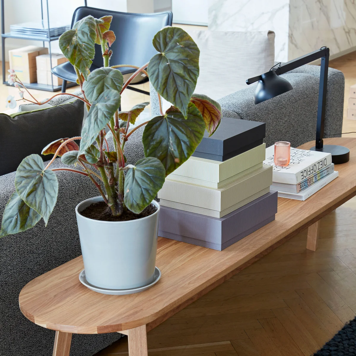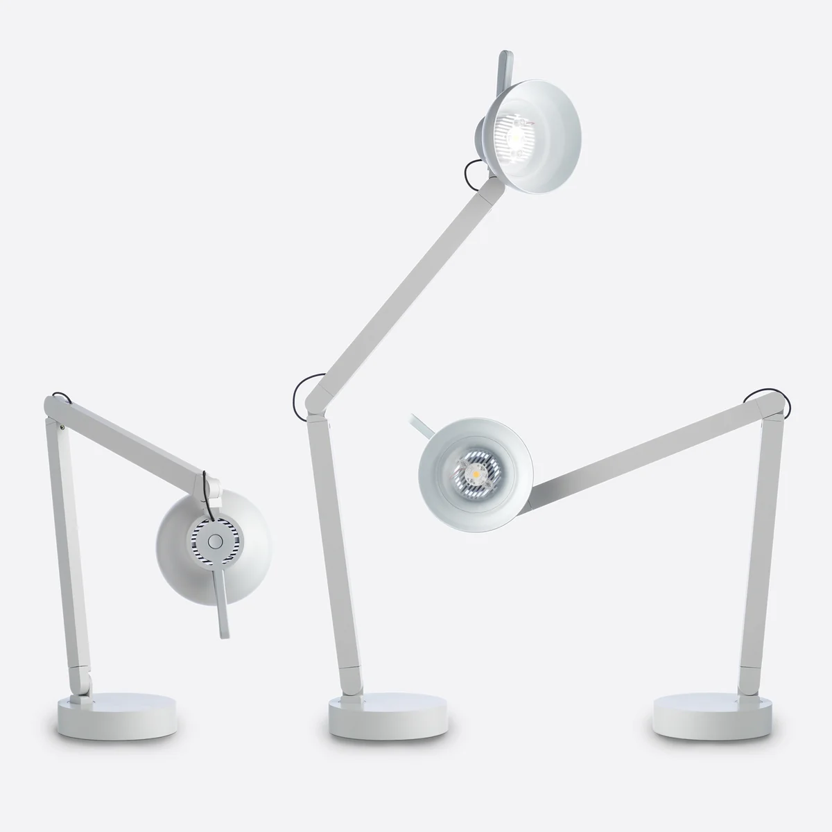 À l'intérieur des bras se trouvent des ressorts à gaz, qui sont par ailleurs utilisés dans la fabrication des chaises de bureau. Ils permettent de s'assurer que la base et le store maintiennent la position souhaitée. La combinaison de tous ces éléments donne à la lampe une apparence fonctionnelle et simple, toute table de bureau en scène.