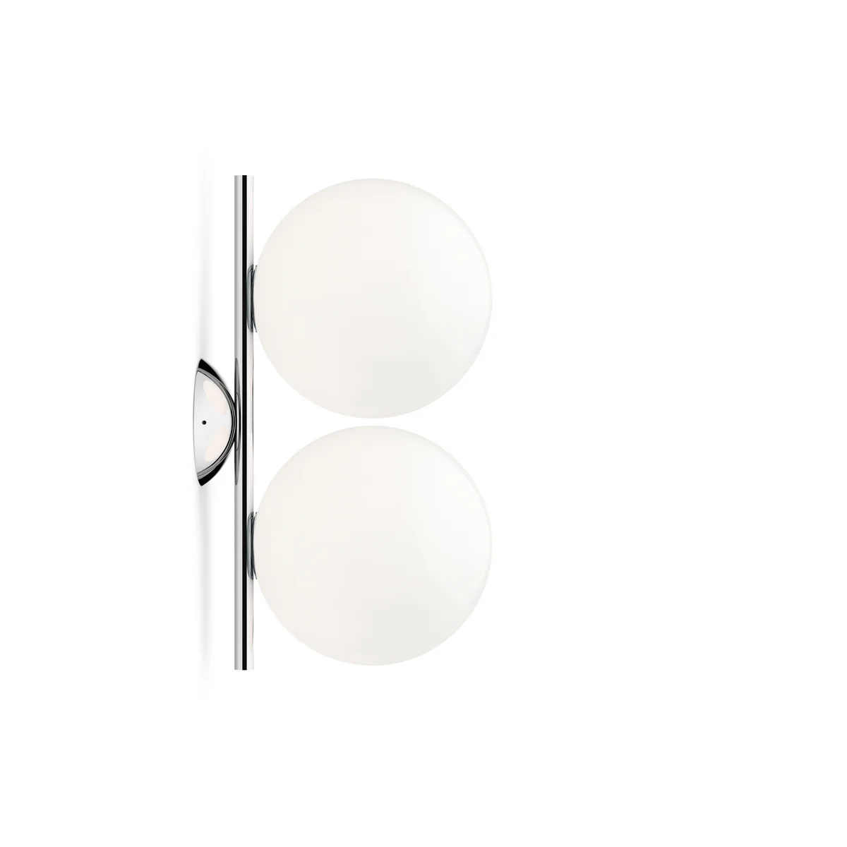 Les deux diffuseurs de la lampe sont en verre opale soufflé à la bouche, le cadre est en laiton ou en acier. L'IC DOUBLE est disponible en deux versions et plusieurs couleurs.