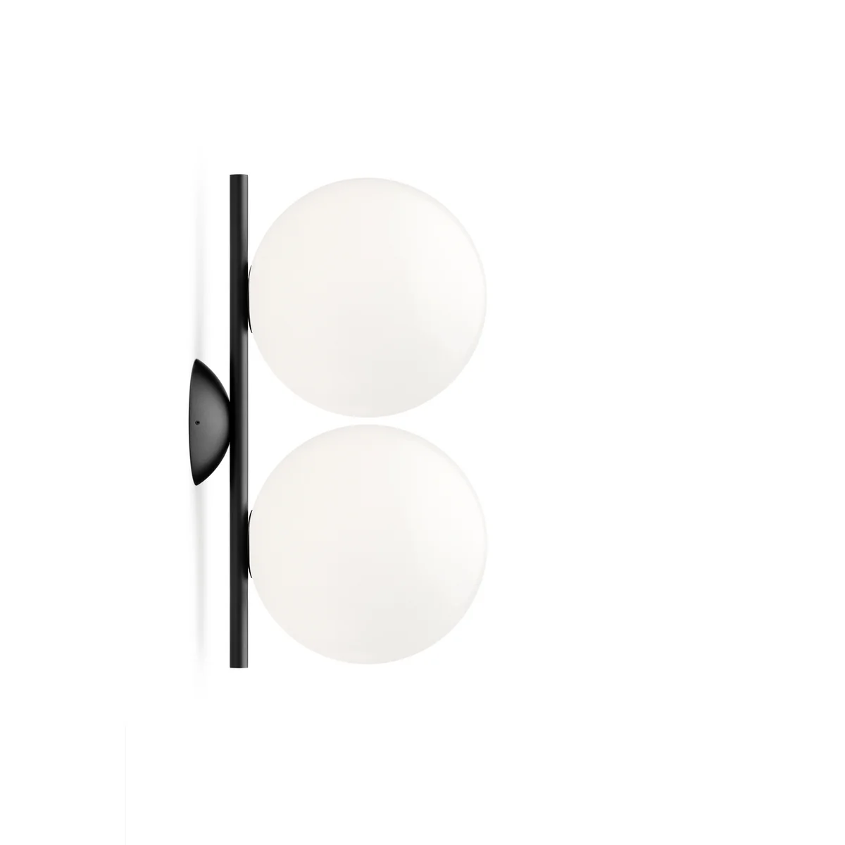 Les deux diffuseurs de la lampe sont en verre opale soufflé à la bouche, le cadre est en laiton ou en acier. L'IC DOUBLE est disponible en deux versions et plusieurs couleurs.