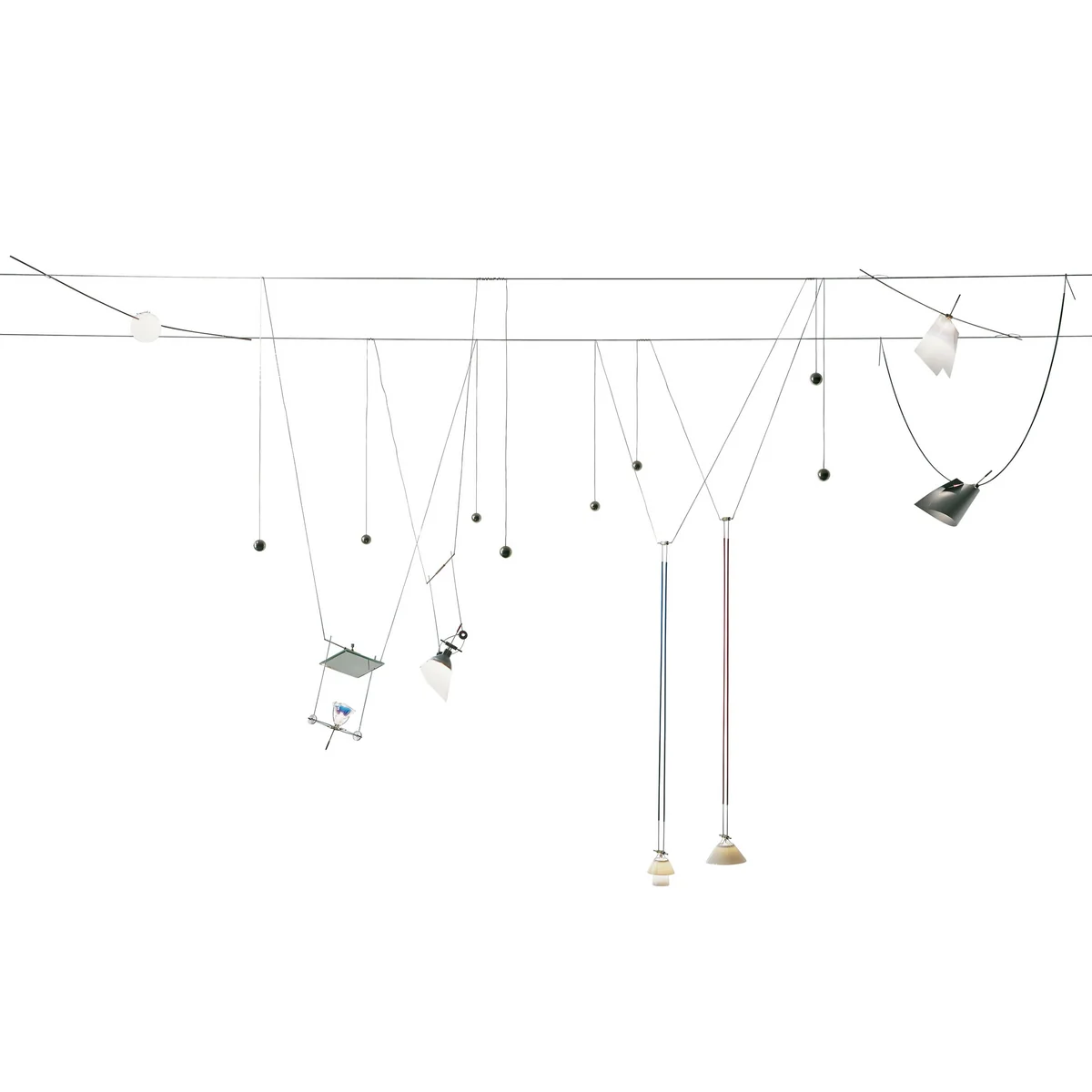 YaYaHo est un système d'éclairage basse tension d'Ingo Maurer. Le système peut être composé, structuré selon ses goûts personnels et étendu à tout moment avec des éléments supplémentaires. Le point de départ de YaYaHo est un transformateur qui réduit 230/125 volts à 12 volts.