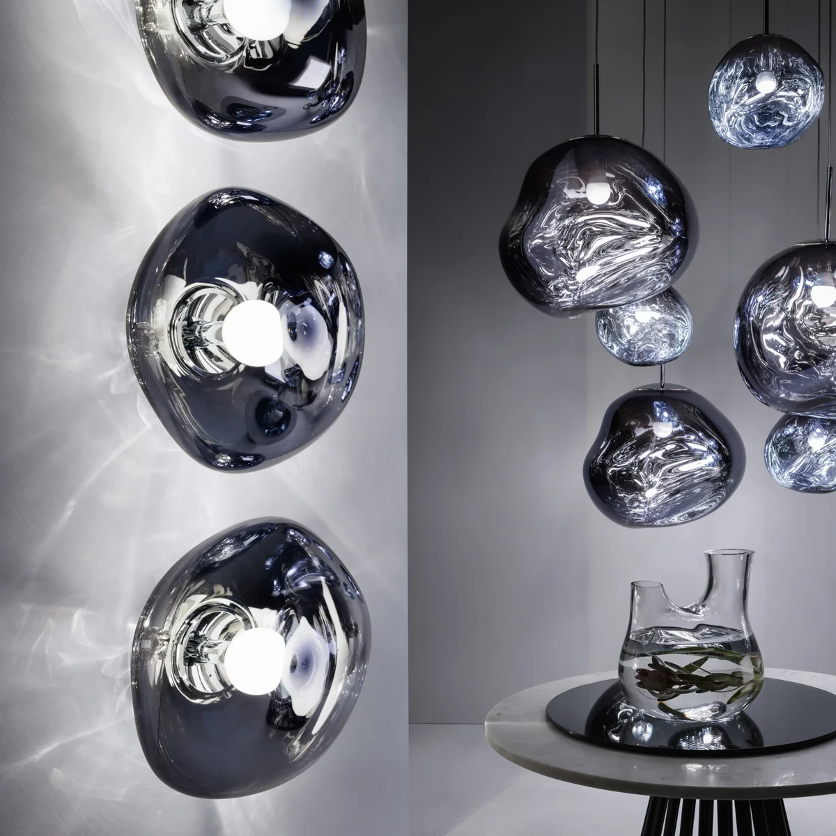 Le luminaire Melt LED évoque le verre en fusion, l'intérieur d'un glacier ou l'immensité mystérieuse de l'espace. Son caractère organique et déformé crée un effet fascinant de "hot blown", obtenu par moulage par soufflage et métallisation sous vide. Le résultat : une sculpture lumineuse naturelle imparfaite qui reflète et met en scène son environnement. Dans sa nouvelle teinte, Melt se montre sous un jour particulièrement lumineux et éthéré. Semi-transparente le jour, elle se transforme la nuit en une sphère doucement lumineuse qui confère à chaque pièce une profondeur mystérieuse. Idéal pour les intérieurs monochromes ou comme contraste calme avec les surfaces métalliques.