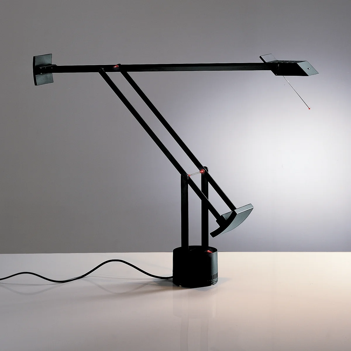 La lampe de table Tizio a été conçue par Richard Sapper pour Artemide . Les bras de la lampe peuvent être orientés et tournés librement. La tête de la lampe et les contrepoids assurent la stabilité de la lampe. La tête de Tizio peut encore une fois être orientée indépendamment du corps de la lampe, de sorte que la lumière tombe exactement là où vous en avez besoin.
