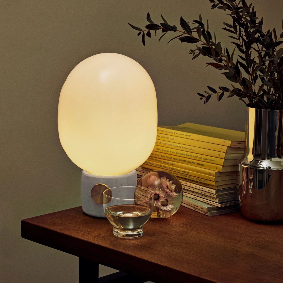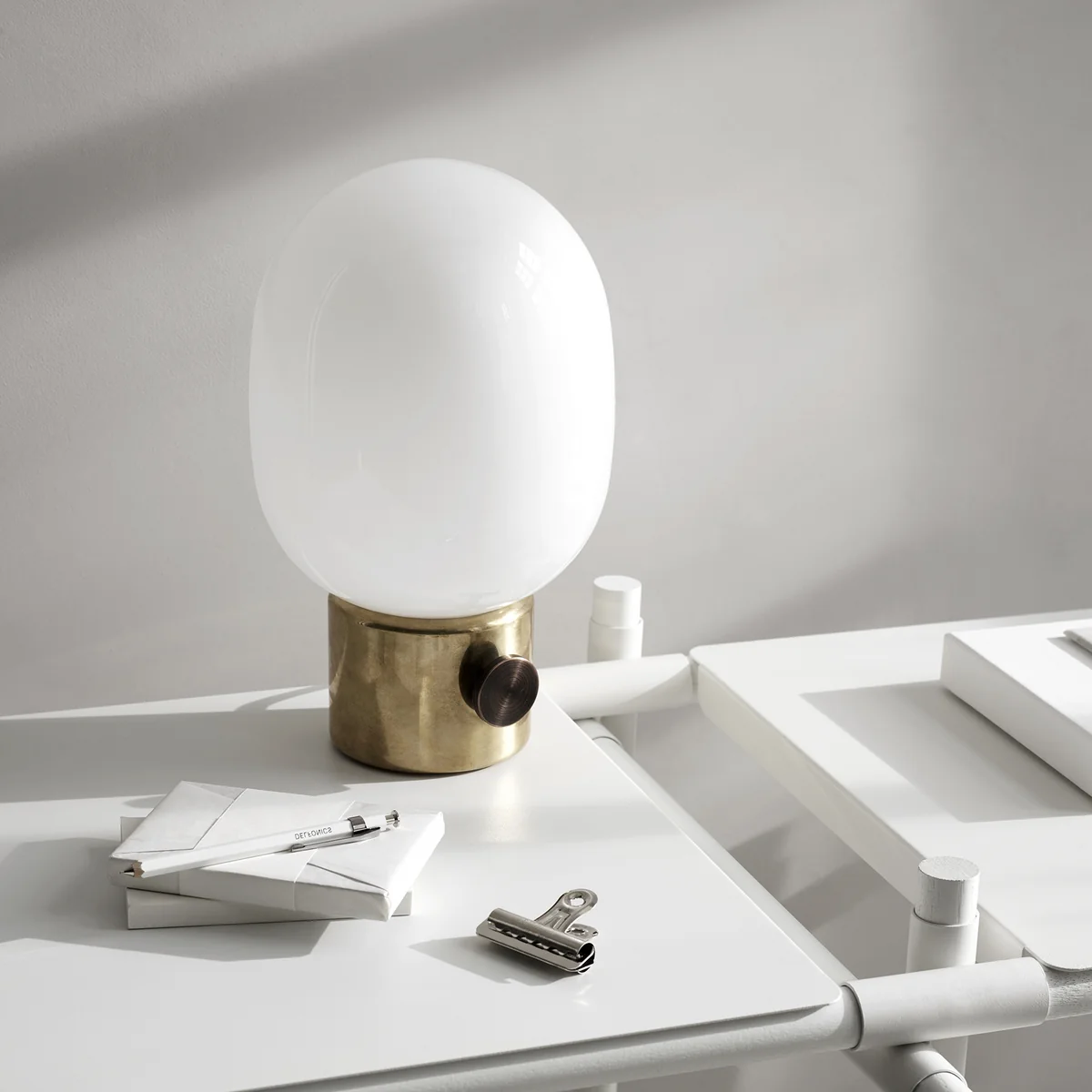 Le designer de Stockholm Jonas Wagell combine pour ce beau luminaire un mélange captivant de matériaux en verre opale et différents socles en béton, laiton ou acier. Le luminaire confère ainsi à la pièce une atmosphère confortable.