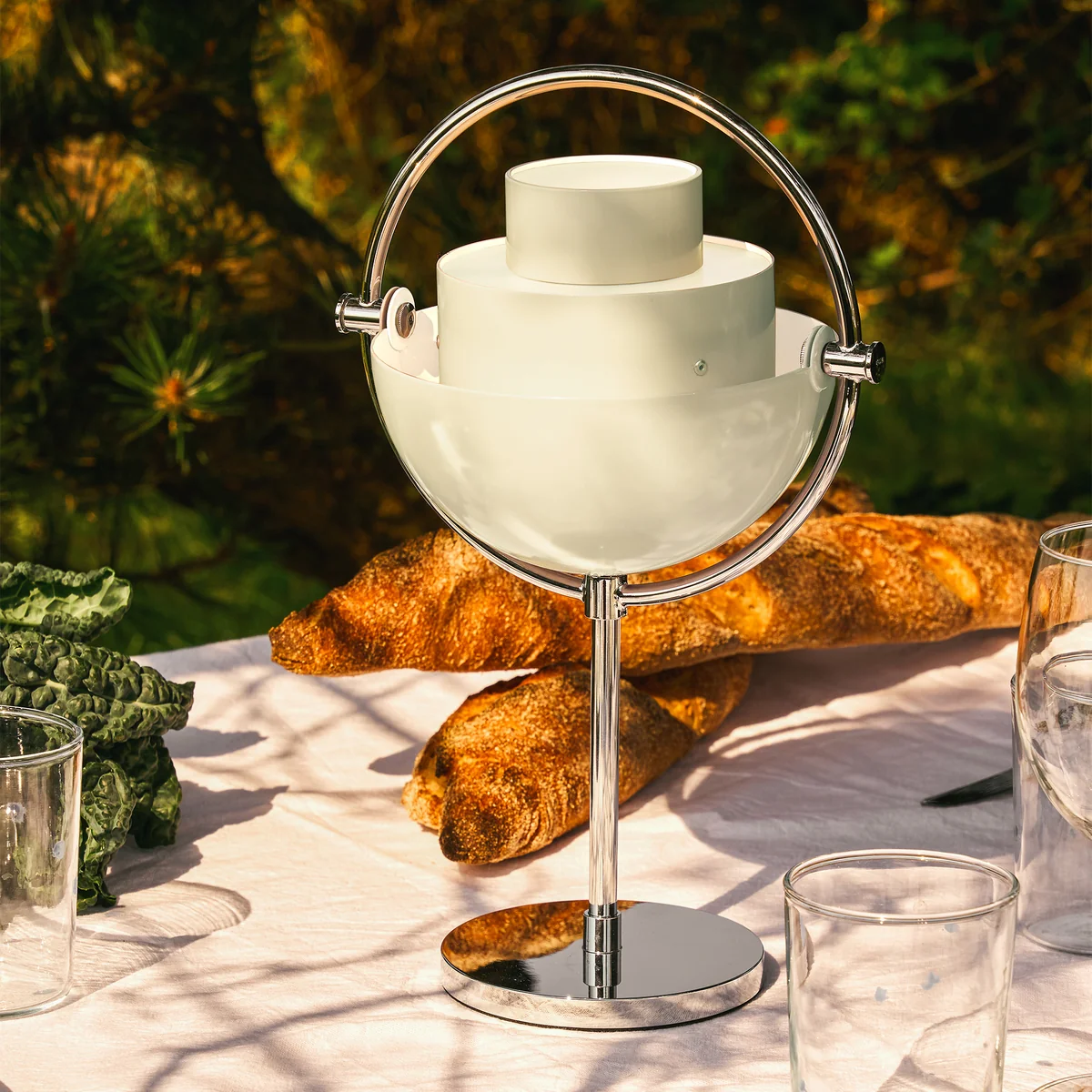 La lampe Multi-Lite Lampe de table portable de Gubi est un chef-d'œuvre de l'art du design. Inspirée de l'âge d'or du 20. siècle, elle combine des courbes harmonieuses et des formes géométriques en un concept esthétique global intemporel. Son design iconique permet à la lampe de s'intégrer parfaitement dans une multitude de styles d'intérieur, du plus classique au plus moderne.