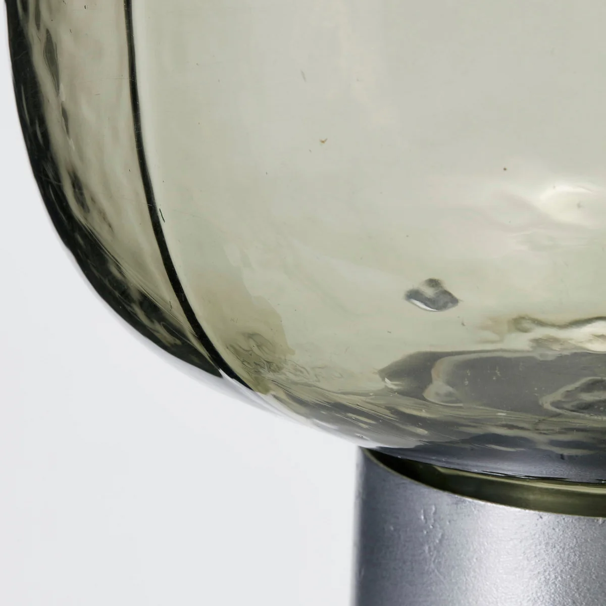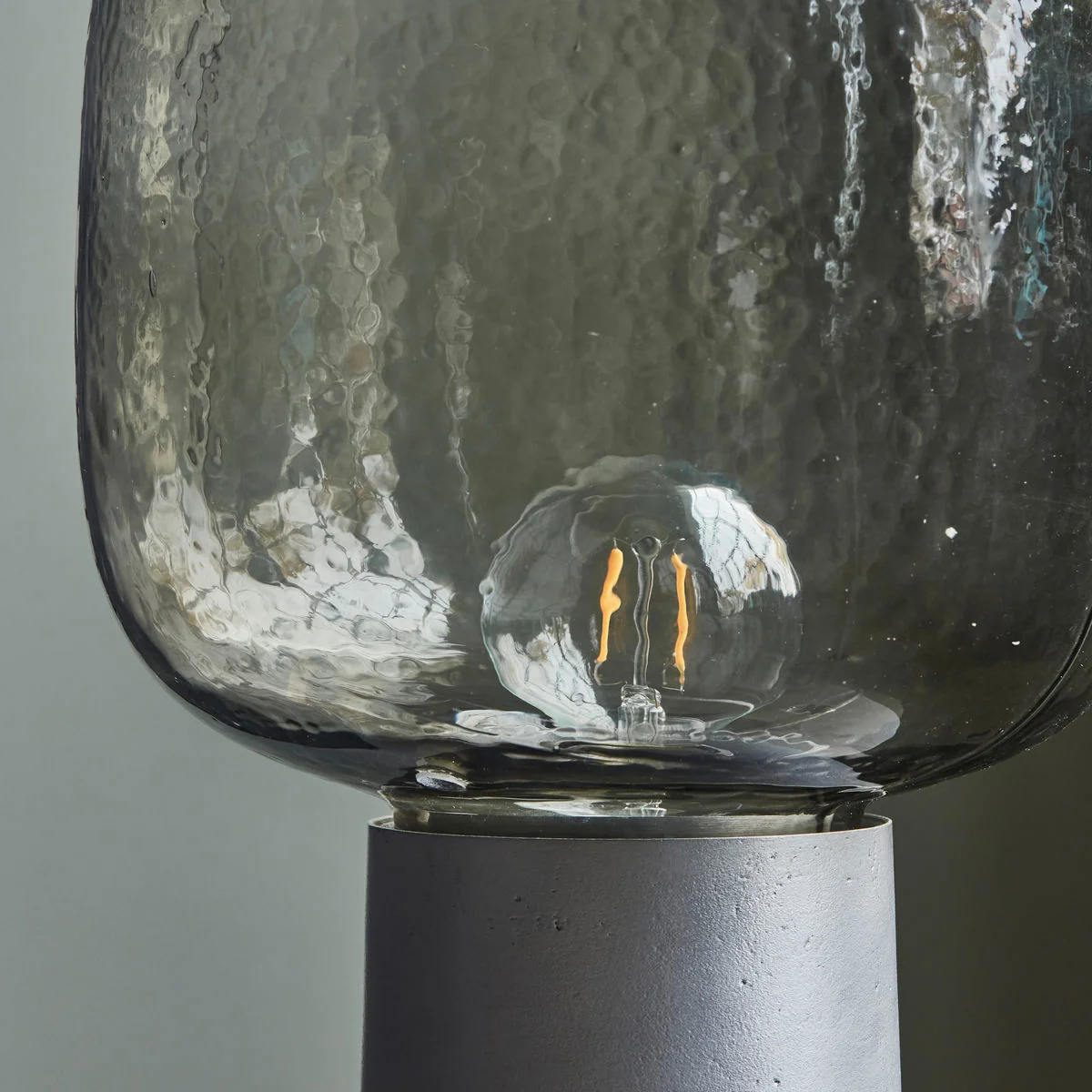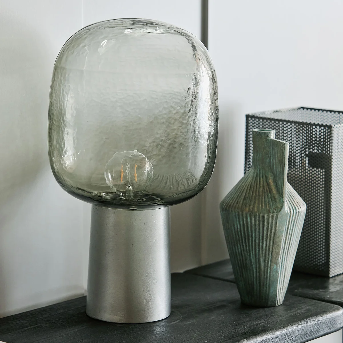 La lampe est disponible en Note Lampe de table avec différents verres en version transparente ou mate.