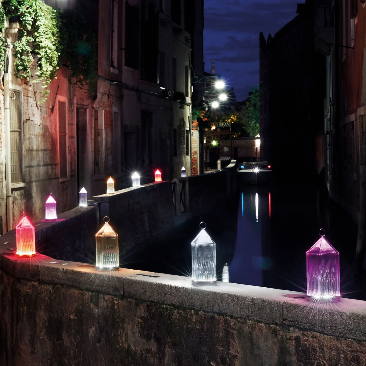 La lampe LED Lantern de Kartell est un compagnon à la fois élégant et pratique qui indique le chemin dans l'obscurité. La lampe sans fil en forme de lanterne classique peut être utilisée à l'intérieur comme à l'extérieur et est facile à transporter grâce à sa poignée. Le designer italien Fabio Novembre a eu l'idée de cette lampe portable, qui est l'expression de son expérience personnelle.