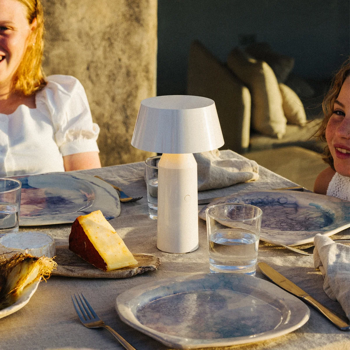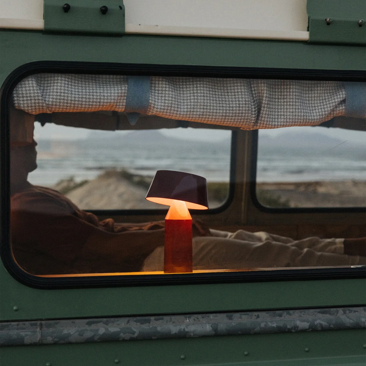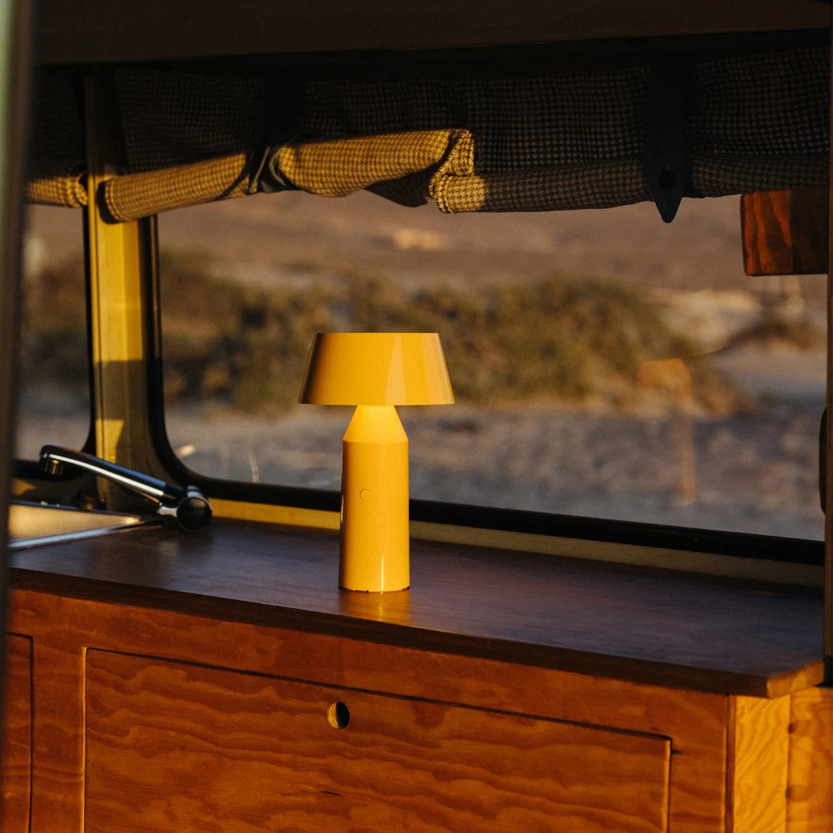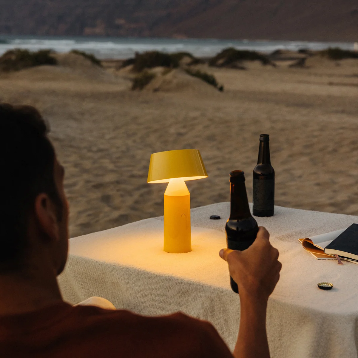 Avec sa lumière confortable et chaleureuse, cette lampe colorée garantit des moments inoubliables, quel que soit l'endroit où elle est placée. Elle est sans fil et équipée d'une batterie à faible consommation d'énergie. Christophe Mathieu a conçu la Bicoca Akku LED lampe de table en 2017 pour marset. La forme géométrique de la Bicoca lampe est en polycarbonate et peut être orientée à volonté grâce à son abat-jour mobile. L'articulation est fabriquée dans un mélange d'acier inoxydable et de téflon.