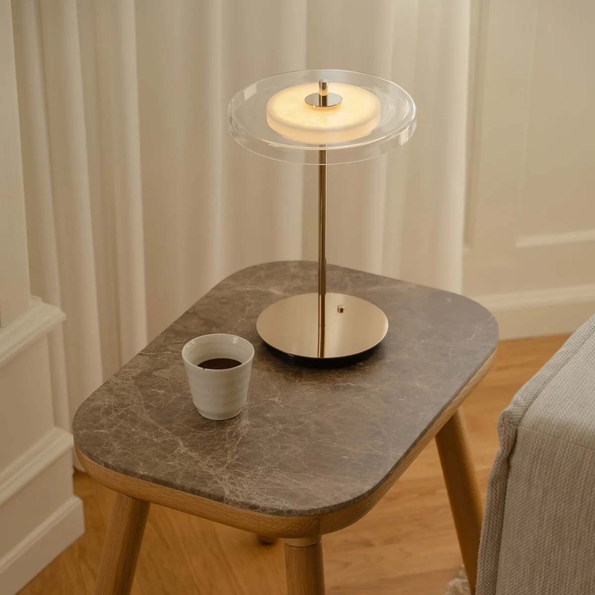 La lampe de table Asteria Move LED de Umage est une lampe légère et portable qui ne comporte aucun câble. Cela donne à son design élégant un accent supplémentaire et la rend facile à déplacer et à utiliser exactement là où la lumière est nécessaire.