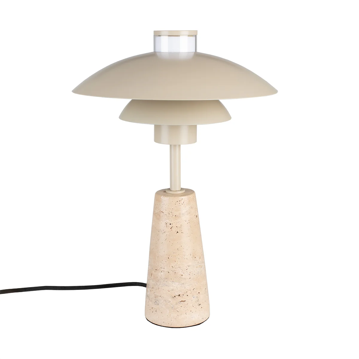 Le lourd socle en travertin véritable ancre le luminaire visuellement et physiquement et forme un contraste saisissant avec la légèreté flottante de l'abat-jour. Cole convient parfaitement comme accent de style sur les buffets, les commodes ou les tables d'appoint - en particulier dans les intérieurs modernes et naturels.