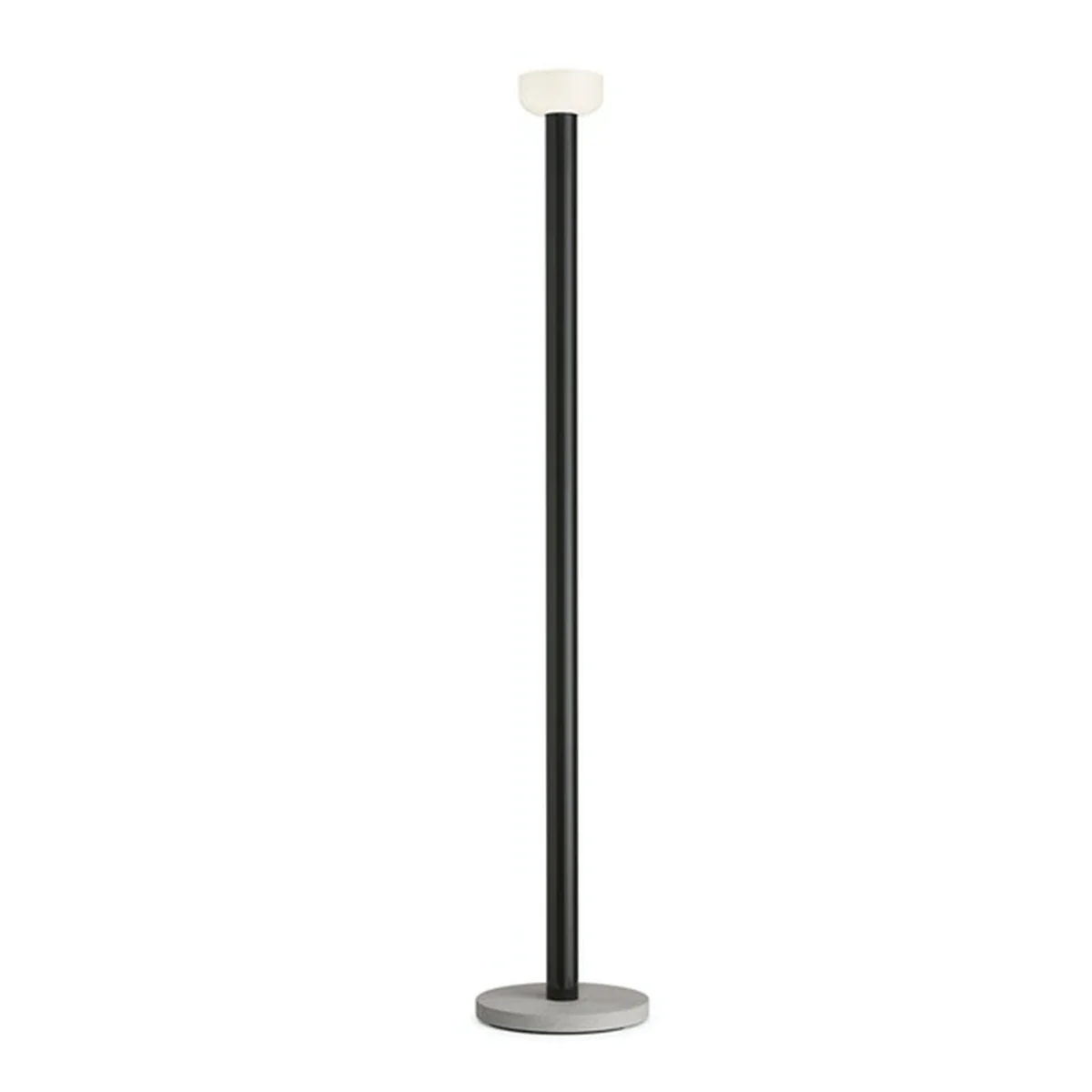 Le lampadaire Bellhop LED a été conçu par Edward Barber & Jay Osgerby pour Flos et impressionne par son design minimaliste. Le lampadaire se compose d'une base ronde en béton et d'une tige en aluminium laqué. À l'extrémité supérieure se trouve le petit spot simple en verre soufflé, qui éclaire la pièce d'une lumière indirecte. Le luminaire mince s'adapte à tous les coins et peut être contrôlé par un câble de 270 cm de long avec un gradateur à pied.