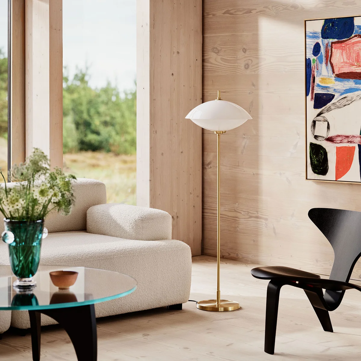 Le lampadaire Clam ™ de Fritz Hansen , inspiré des coquillages, est en verre opale soufflé à la bouche et en laiton brossé. Il peut être ouvert et fermé individuellement, dévoilant sa perle de lumière lumineuse à l'intérieur. Le design intemporel d'Ahm & Lund contribue non seulement à éclairer l'ambiance d'une pièce, mais aussi à améliorer l'humeur grâce à son esthétique intemporelle.