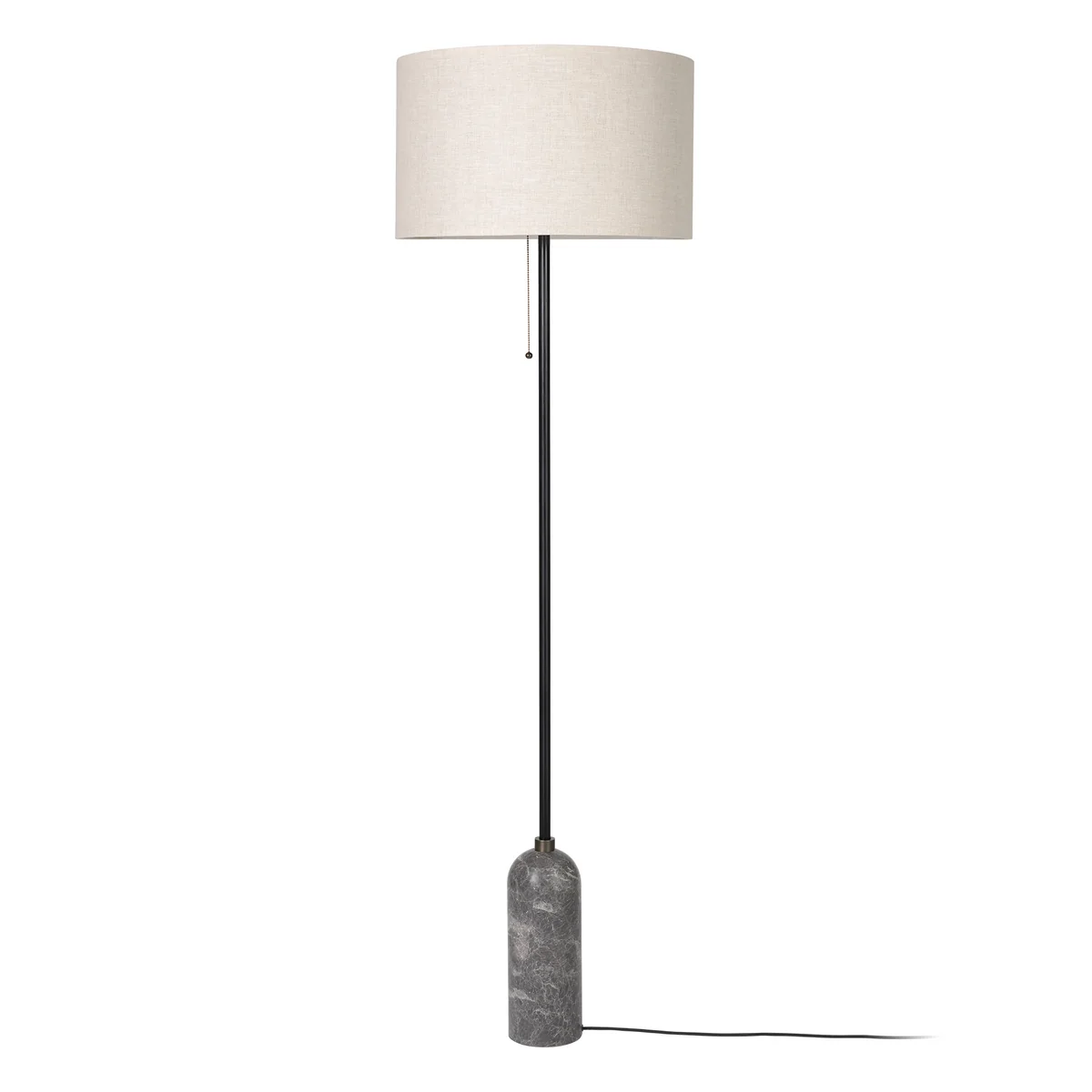 Le lampadaire Gravity de Space Copenhagen pour Gubi allie clairement discrète élégance, fonctionnalité limpide et légèreté. Le socle est en marbre, alors que l'abat-jour est en toile.