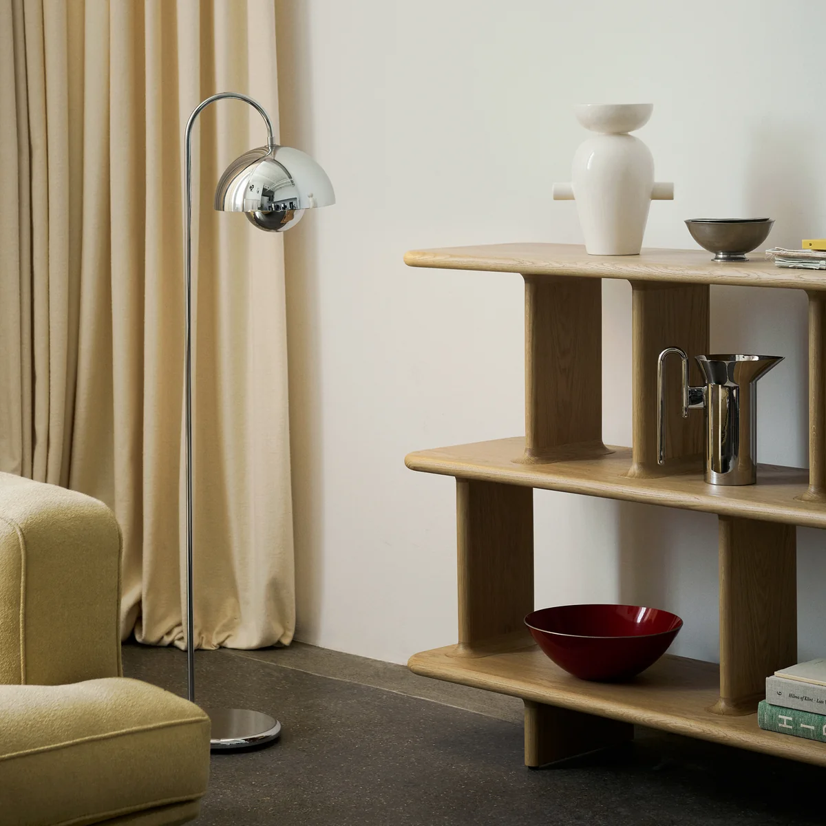Le lampadaire FlowerPot VP12 de & Tradition est un chef-d'œuvre des années 1960 qui n'a rien perdu de sa fascination jusqu'à aujourd'hui. Avec ses formes douces et rondes et ses couleurs harmonieuses, ce luminaire rappelle l'époque du flower power tout en dégageant une élégance intemporelle. Le luminaire est en métal laqué et en acier inoxydable, ce qui lui confère une structure durable et stable.