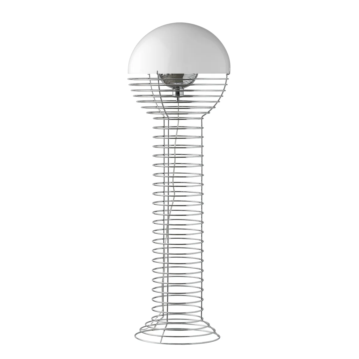 Le modèle Wire lampadaire de Verpan est une création du designer danois Verner Panton datant de 197 2. Le luminaire possède une armature en fil d'acier torsadé qui rappelle un ressort et donne ainsi une impression d'aération et de légèreté. La structure se termine par un abat-jour hémisphérique en plastique sous lequel est dissimulé un réflecteur métallique. Le luminaire émet ainsi une lumière douce et diffuse qui plonge la pièce dans une atmosphère chaleureuse.