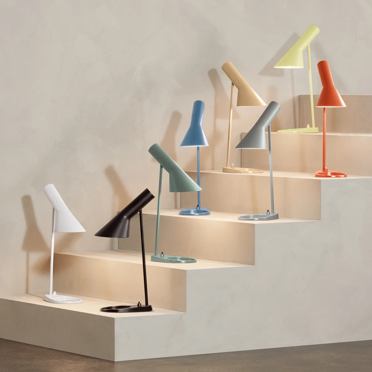 Avec les lampes de table AJ, Louis Poulsen rend hommage au designer Arne Jacobsen et célèbre le 60e anniversaire de la série de lampes AJ. La collection comprend des couleurs classiques et contemporaines qui ont été soigneusement sélectionnées et qui s'accordent avec l'univers de couleurs déjà existant d'Arne Jacobsen. Vert foncé, ocre, rouge rouille, Midnight Blue, aubergine ainsi que deux nuances de gris sont au choix.