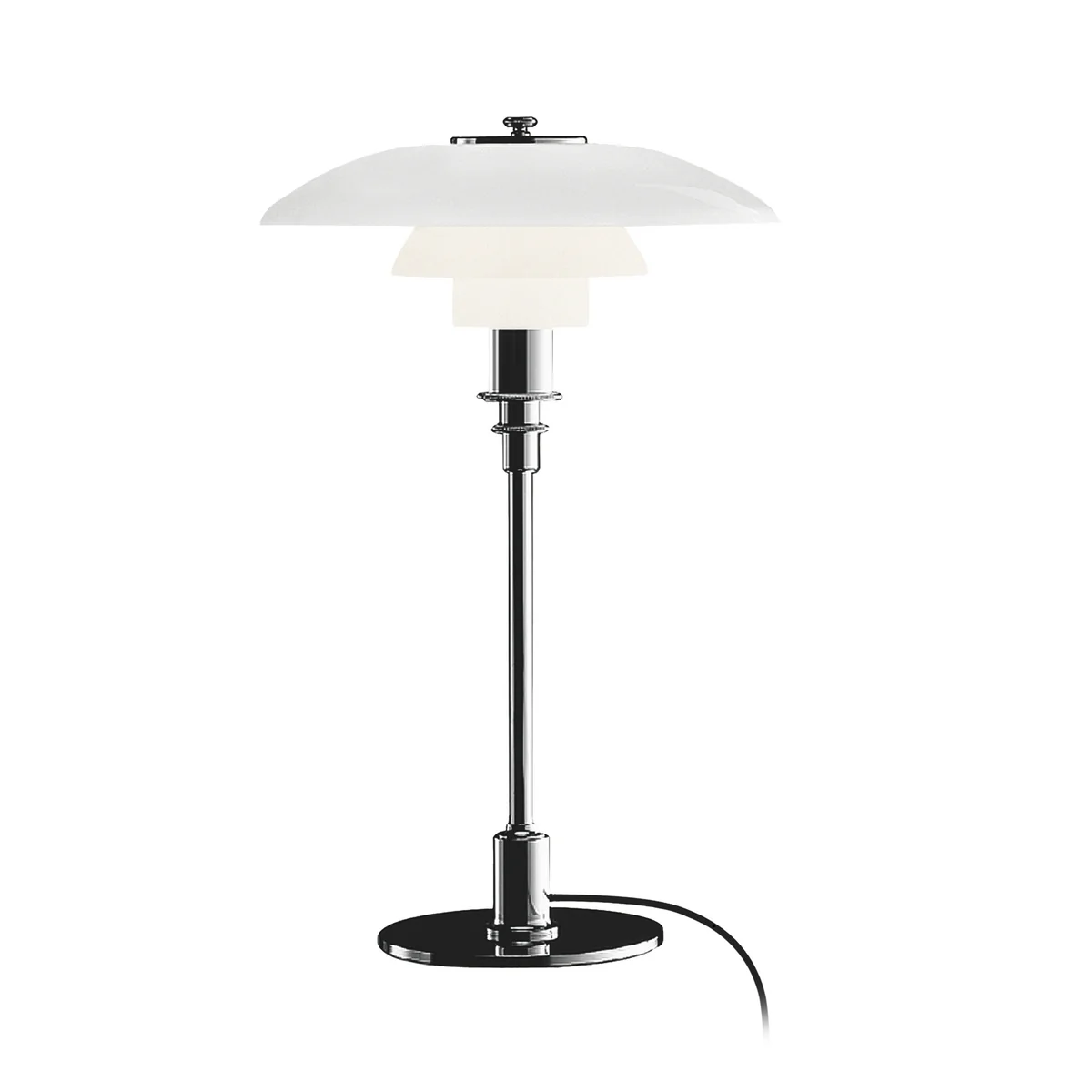 La lampe de table PH 3/2 fait partie de la famille des abat-jour PH3. La série de Poul Henningsen a été imaginée pendant quelques mois mouvementés de l'hiver 1923-26 pour un hall d'exposition à Copenhague, appelé "Forum". Le système d'abat-jour PH 3 était au départ une solution de luminaire suspendu, mais il a très vite évolué vers d'autres types de luminaires pour les tables, les sols, les murs et un grand nombre de lustres. En conséquence des différentes tailles, matériaux, surfaces et sources lumineuses, plus de mille variantes ont été développées au fil des ans. Aujourd'hui, la série est devenue un classique scandinave de renommée mondiale.