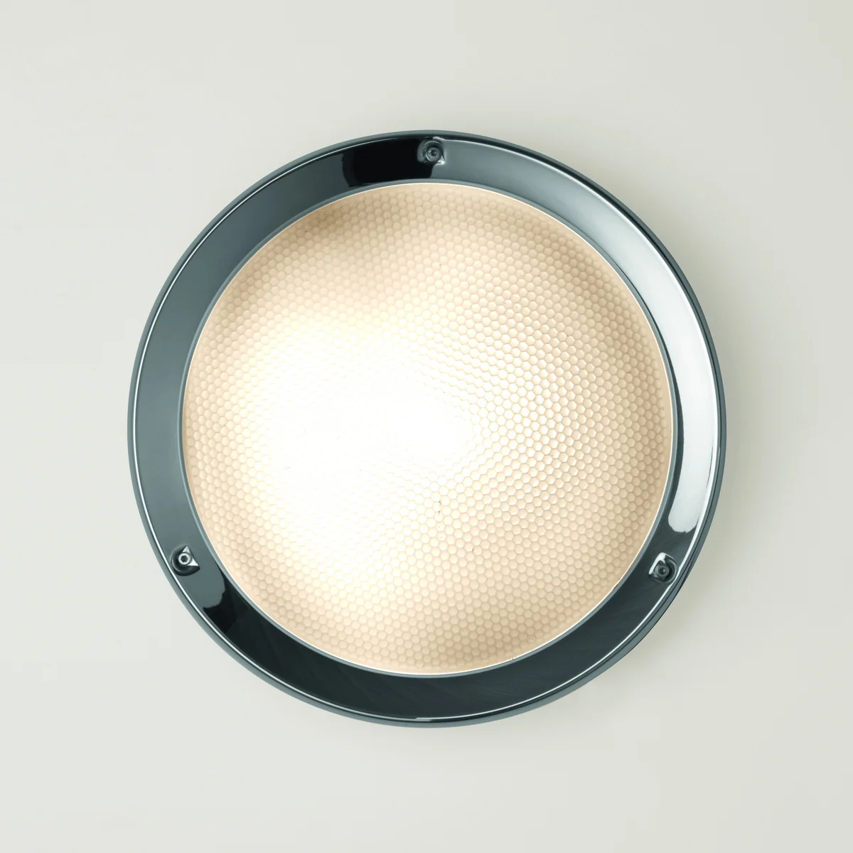Le corps de la lampe est en acier inoxydable et est disponible en différentes versions. Le réflecteur rond, quant à lui, est en aluminium brillant.
