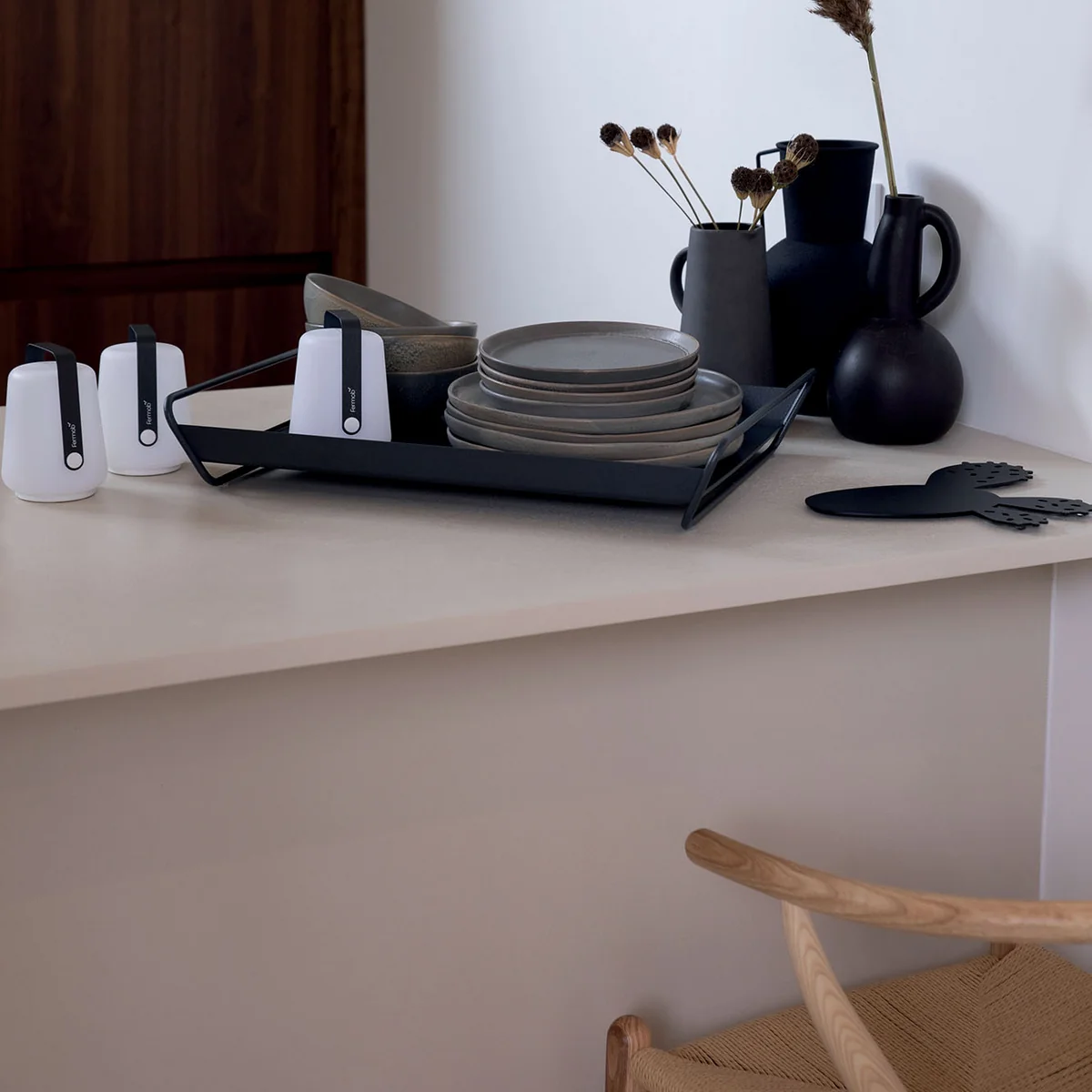 La lampe Balad lampe à LED rechargeable de Fermob est désormais également disponible dans un set attrayant en version plus petite d'une hauteur de 12 cm. Comme le modèle classique, la petite variante est une excellente façon de faire briller le jardin. Le projet a été conçu par Tristan Lohner et se distingue par son design sobre. À l'aide d'une poignée, la Balad LED rechargeable peut être facilement transportée à l'endroit souhaité, que ce soit à l'intérieur ou à l'extérieur.