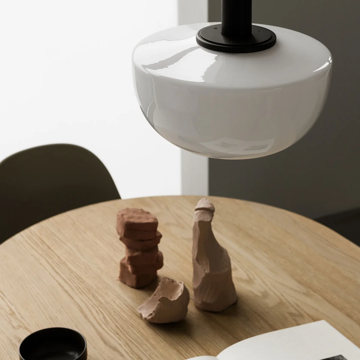 Tandis que le verre fumé laisse apparaître l'ampoule à l'intérieur et offre ainsi une lumière directe à 360° pour travailler, le verre opale opaque assure un éclairage plutôt confortable de la pièce et garde l'ampoule cachée à l'intérieur. La lampe peut être placée dans le salon, dans la cuisine ou suspendue en série au-dessus de la table à manger ou dans le couloir. La suspension Bank a été conçue par le duo Norm Architects, qui a déjà créé de nombreux designs pour Audo .