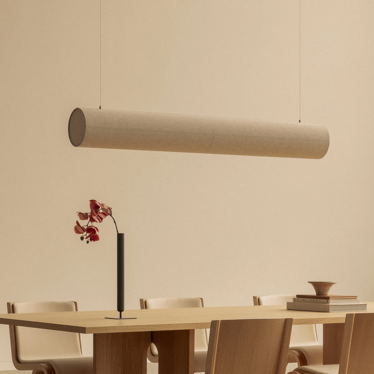 La suspension Hashira Linear LED de Audo est une réinterprétation de la célèbre collection d'éclairage au design horizontal qui apporte calme et élégance dans n'importe quel espace, que ce soit au-dessus d'une table à manger, d'un comptoir ou d'un bureau. Avec son esthétique raffinée et aérodynamique, la suspension Hashira Linear LED de Norm Architects semble flotter sans effort, suspendue à des câbles discrets. Elle est dotée d'une source lumineuse LED interchangeable à intensité variable qui diffuse une lumière chaude - suffisamment claire pour travailler, mais aussi suffisamment douce pour créer une atmosphère accueillante.