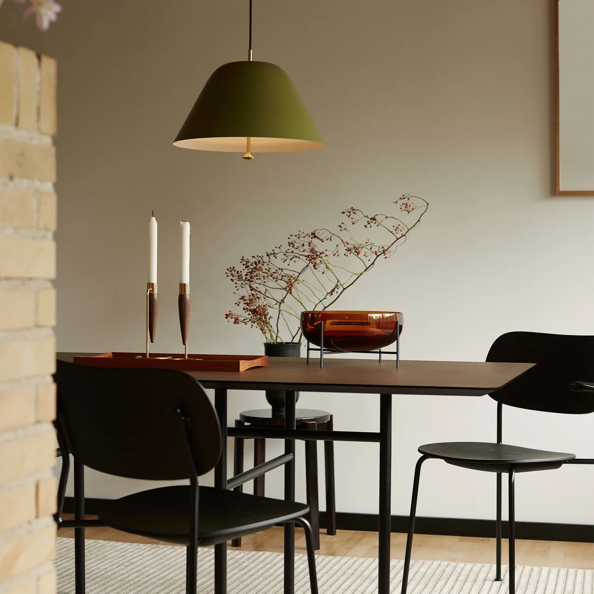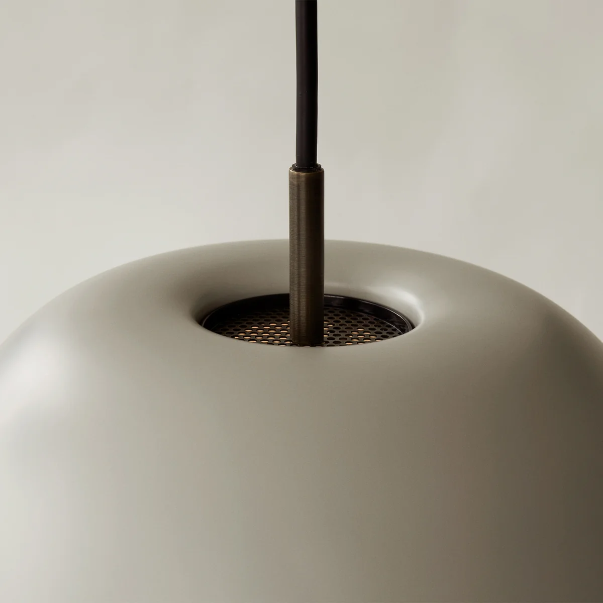 La suspension Levitate de Audo fait apparaître le salon sous la lumière la plus fine. Son langage formel intemporel joue avec l'ombre et la lumière, la gravité et la légèreté. L'abat-jour généreux de la lampe est perforé sur sa partie supérieure et projette ainsi également de la lumière vers le plafond, ce qui crée un contraste discret et stylé. Le luminaire suspendu Levitate est fixé sur des douilles en laiton. Le design a été conçu par le studio de design Afteroom.