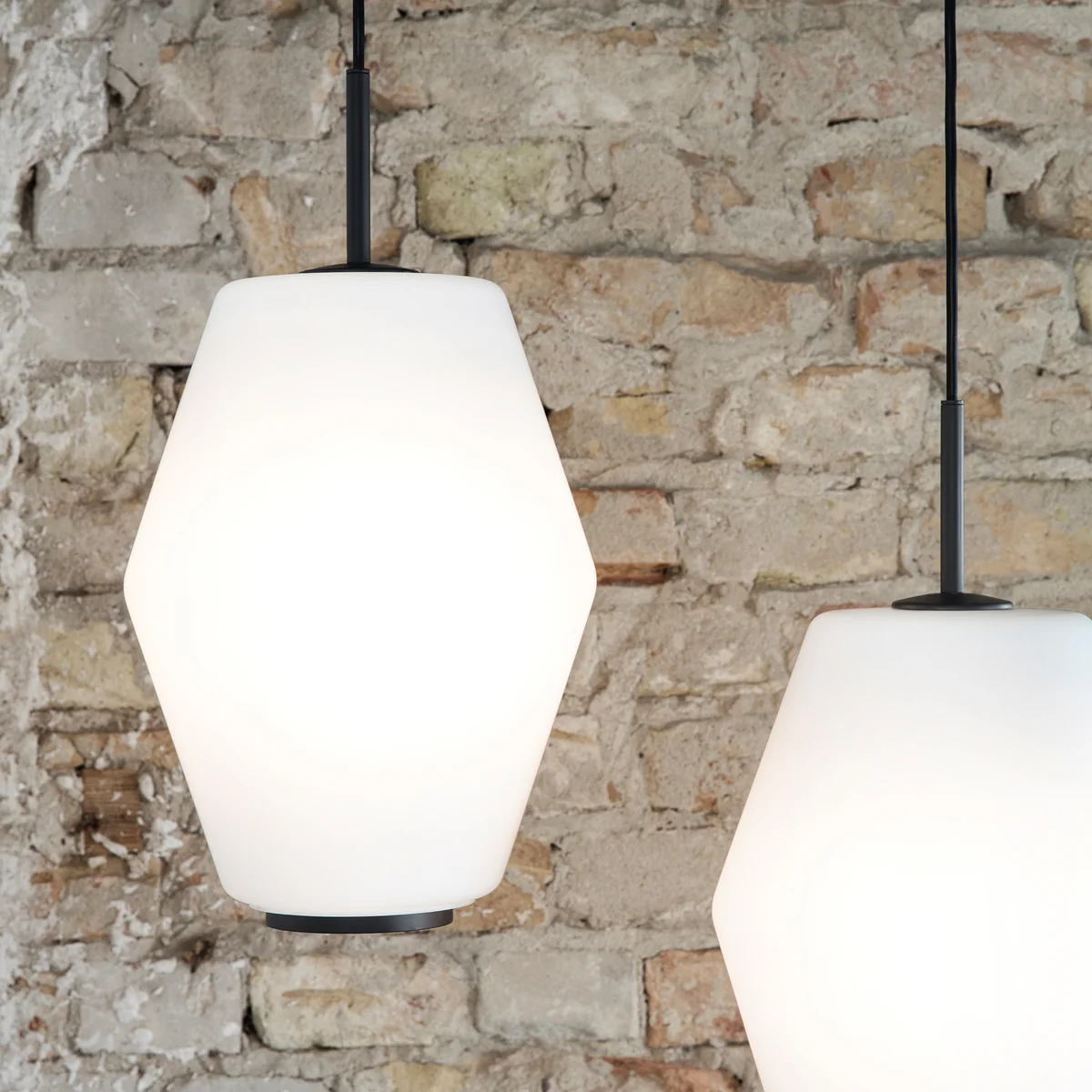 Grâce à l'ouverture inférieure, le luminaire fournit une lumière directe qui éclaire la zone inférieure et diffuse la lumière à travers l'ombre elle-même, créant ainsi une atmosphère agréable dans n'importe quelle pièce. Que ce soit dans le salon, dans le couloir, en rangée ou en grappe au-dessus de la table à manger, le luminaire suspendu Dahl apporte une touche d'éclat.