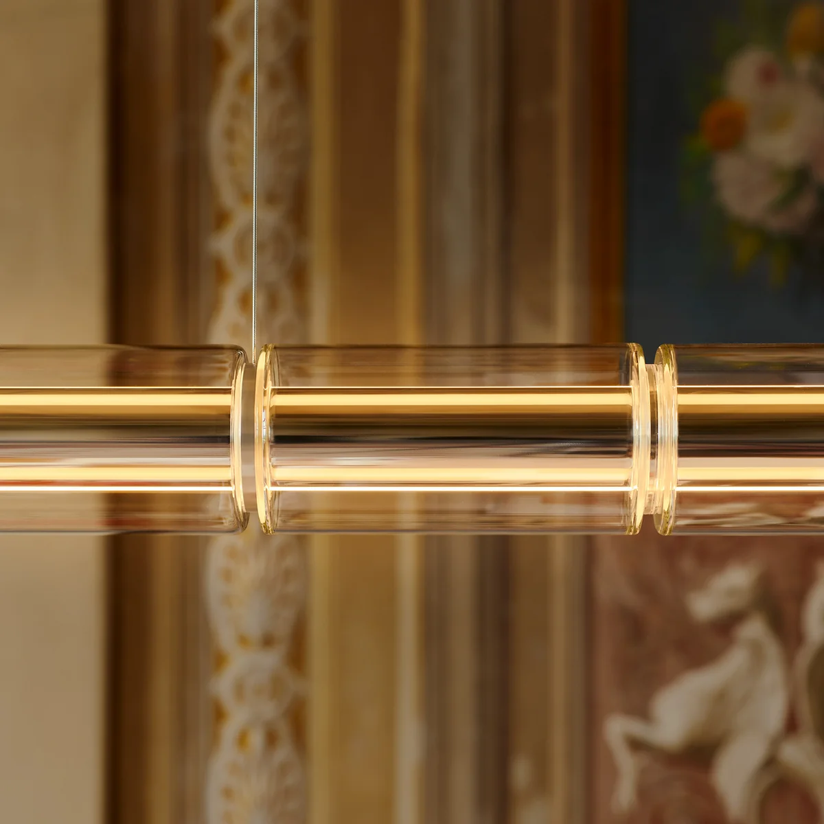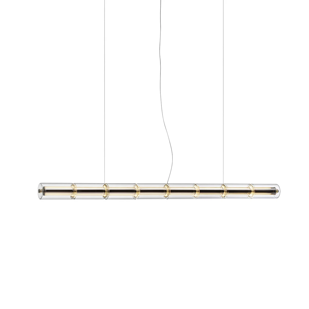 Le profilé est entouré d'une succession de verres cylindriques en borosilicate qui sont séparés de manière rythmique par de fines entretoises et qui confèrent au corps lumineux une légèreté sculpturale. Que ce soit individuellement ou en rangées parallèles, Luce Cilindrica déploie dans chaque pièce une présence calme et architectonique.
