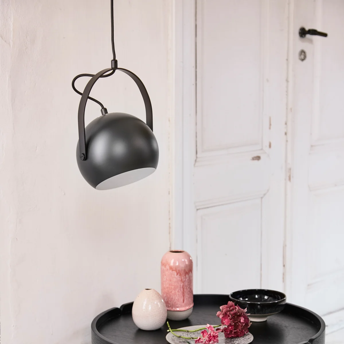 Frandsen - Ball lampe à suspension avec poignée ø 19 cm, noir / blanc