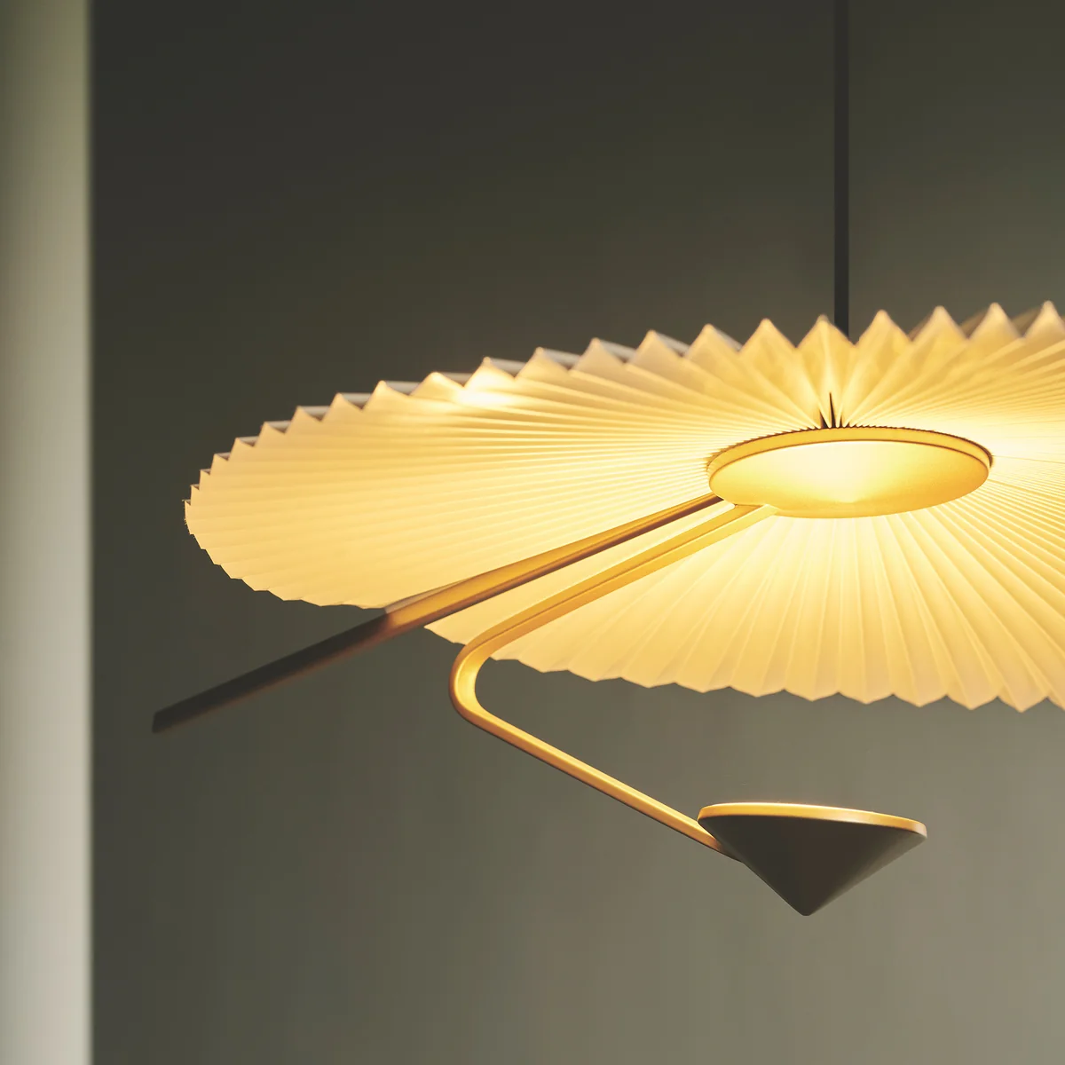 Le duo de designers Thalea Schmalenberg et Kasper Fris Egelund s'est inspiré de l'élégance de l'éventail en papier traditionnel. Leur fascination pour la force d'expression simple et poétique ainsi que pour les propriétés interactives de l'éventail a conduit au développement du concept Liris.
