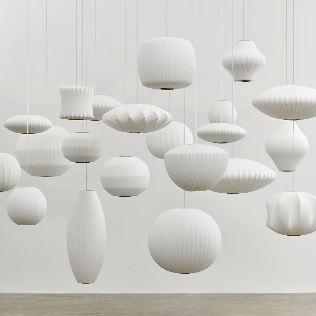 Conçue par George Nelson en 1947, la série Nelson Angled Sphere Bubble Suspension de HAY fait partie de la série Nelson Bubble Pendant Lamp. Elle propose une multitude de suspensions aux formes sphériques différentes. Inspirées des suspensions suédoises tendues de soie, ces lampes ont des formes organiques qui semblent flotter au-dessus de la tête et diffusent une lumière douce et agréable.