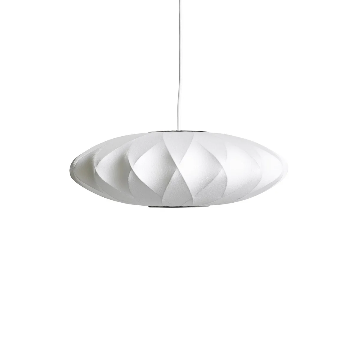 La soucoupe Nelson Crisscross Bubble Bubble Pendant Light by HAY est un modèle de 194 7. ans conçu par George Nelson. Il cherchait une lampe adaptée à son bureau lorsqu'il a découvert une série de lampes à suspension suédoises mat soyeux qu'il trouvait trop chères. Sans plus attendre, il décide de créer ses propres lampes, qui correspondent à ses idées esthétiques.