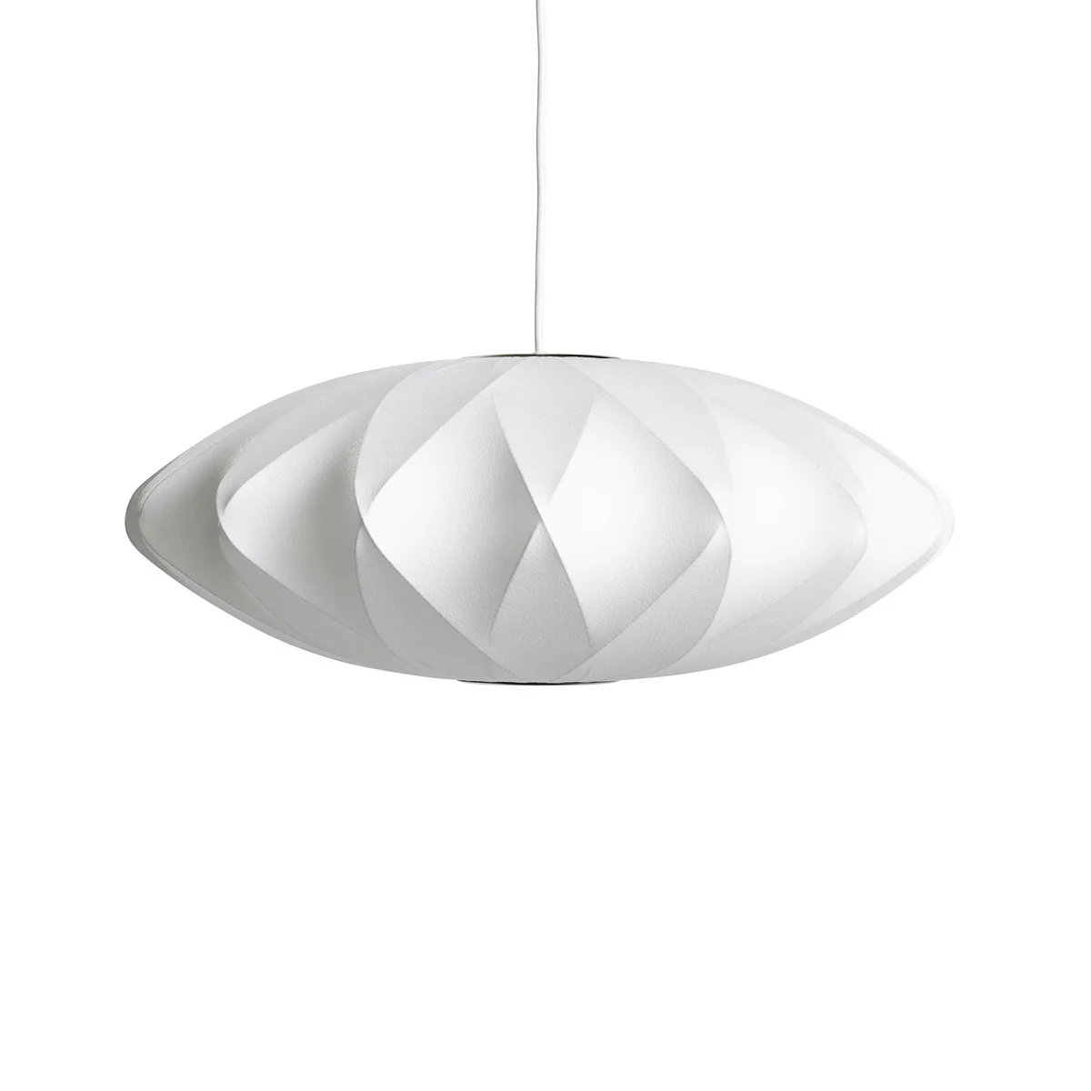 La soucoupe Nelson Crisscross Bubble Bubble Pendant Light by HAY est un modèle de 194 7. ans conçu par George Nelson. Il cherchait une lampe adaptée à son bureau lorsqu'il a découvert une série de lampes à suspension suédoises mat soyeux qu'il trouvait trop chères. Sans plus attendre, il décide de créer ses propres lampes, qui correspondent à ses idées esthétiques.