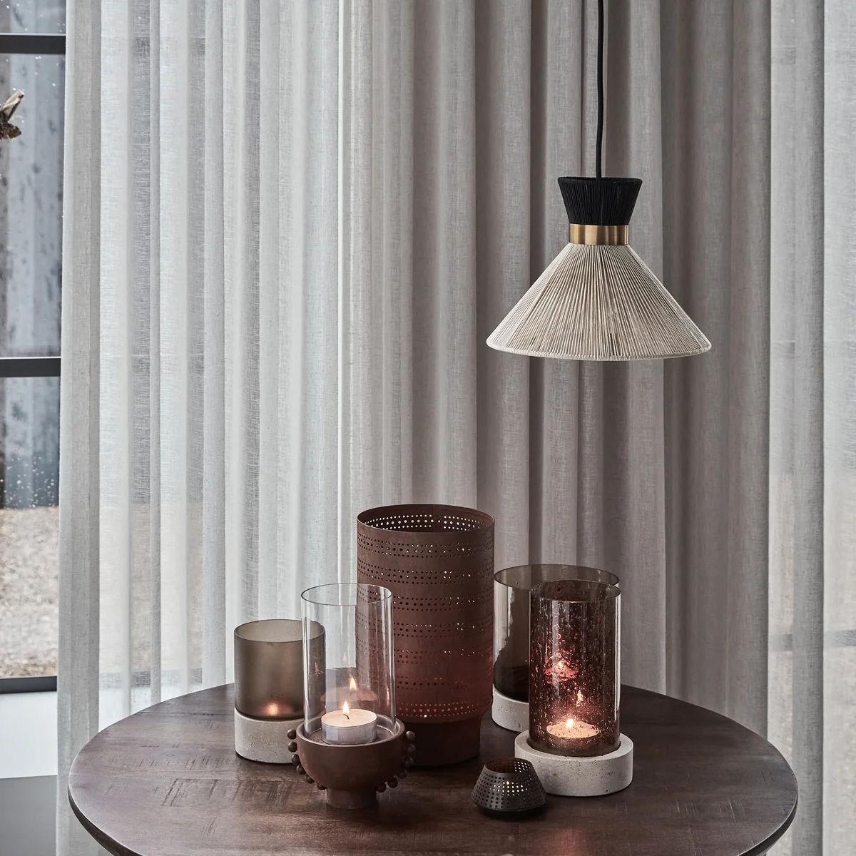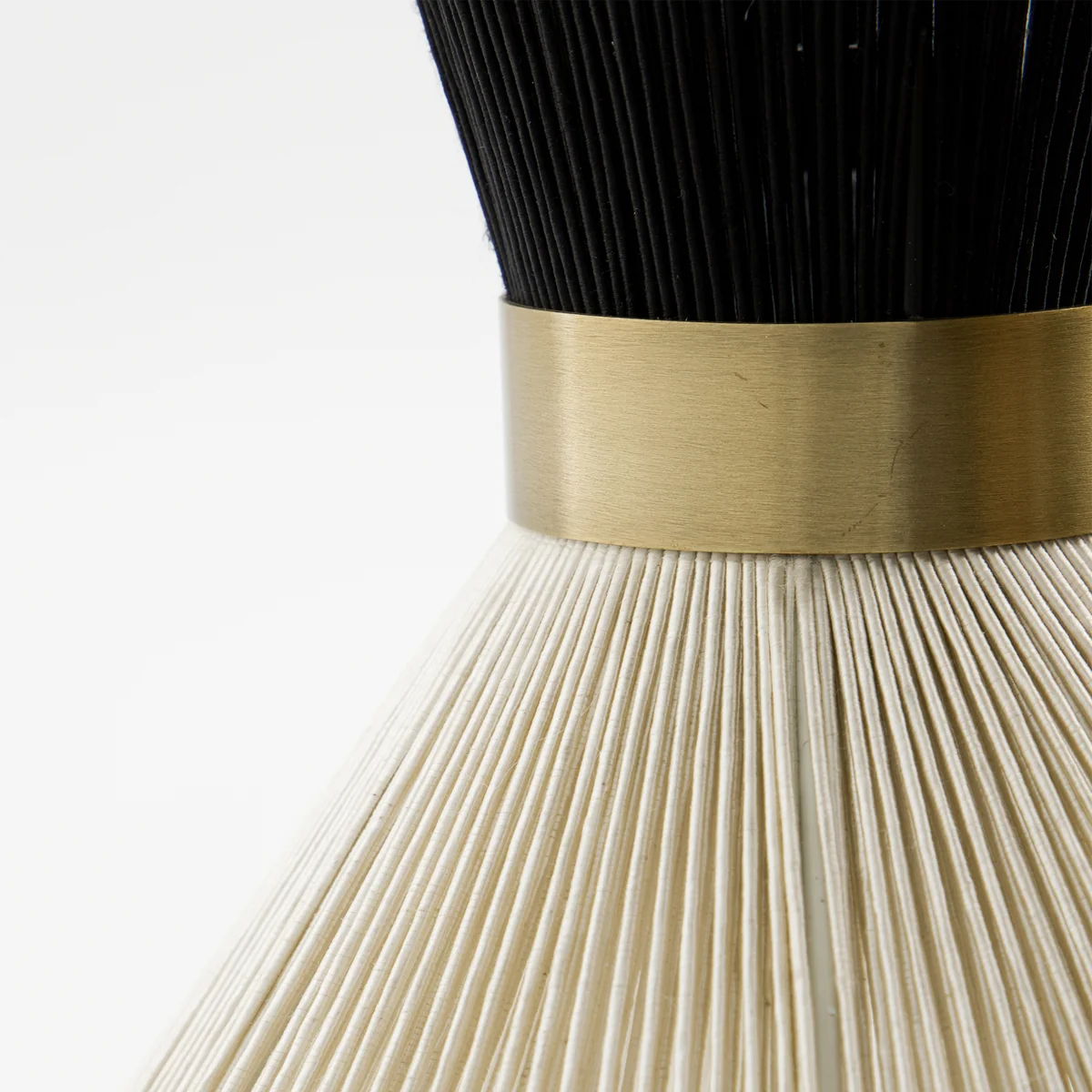 La suspension Cord de House Doctor attire tous les regards et confère élégance et raffinement à votre pièce. Ce luminaire exquis combine du fer robuste et du laiton noble avec de fins fils de polyester blanc crème et noir qui enveloppent l'abat-jour avec art. Le design allie une esthétique moderne à un charme intemporel et assure une lumière chaude et accueillante qui transforme chaque pièce en une oasis de bien-être pleine de style. Que ce soit au-dessus de la table de la salle à manger, dans le salon ou dans la cuisine, la lampe suspendue Cord apporte une touche de style dans chaque environnement.