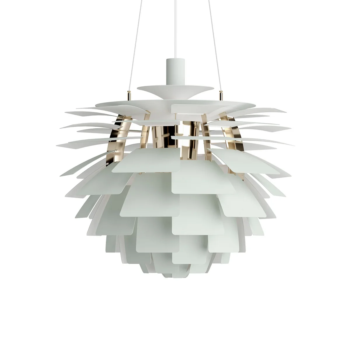Comme chaque rangée est décalée par rapport à la précédente, les 72 feuilles peuvent se "couvrir" les unes les autres, créant ainsi un luminaire omnidirectionnel sans éblouissement dont la source lumineuse reste cachée, quelle que soit la perspective. La lumière est transmise et réfléchie sur les feuilles situées en dessous, créant ainsi un éclairage distinct et unique. Les premiers Artichoques ont été conçus pour un restaurant de Copenhague appelé Langelinie Pavilion - où ils sont toujours accrochés aujourd'hui.
